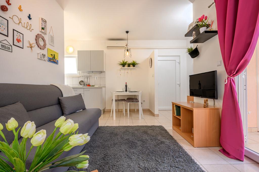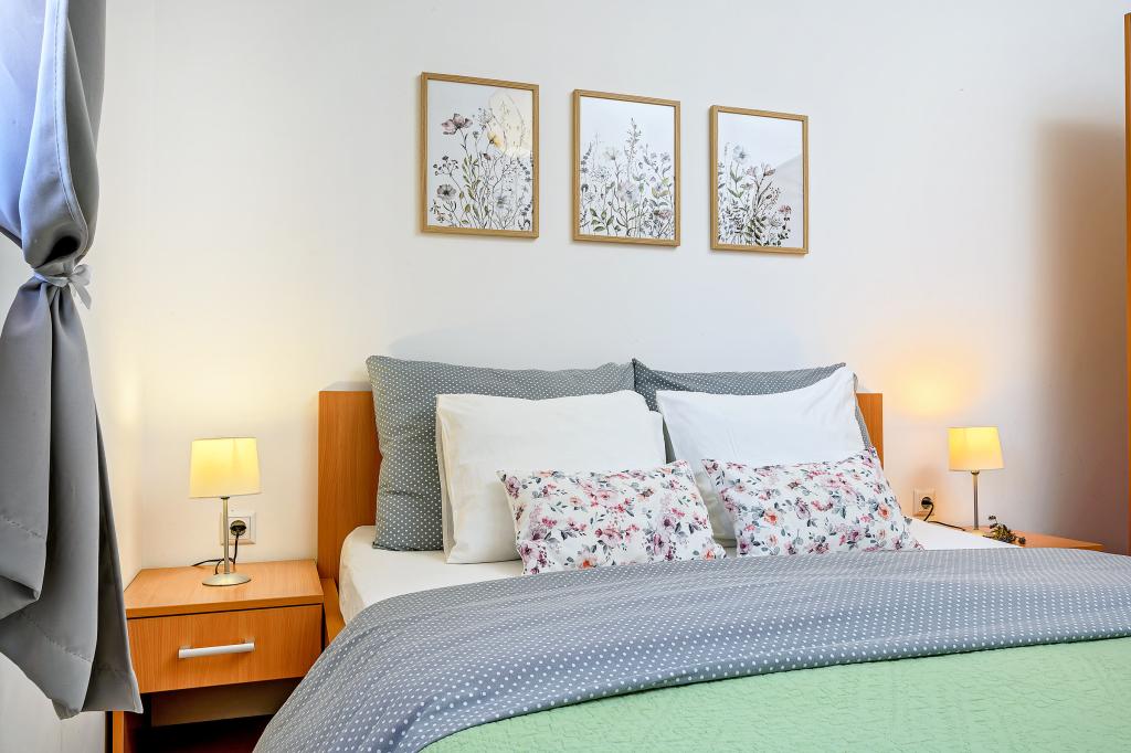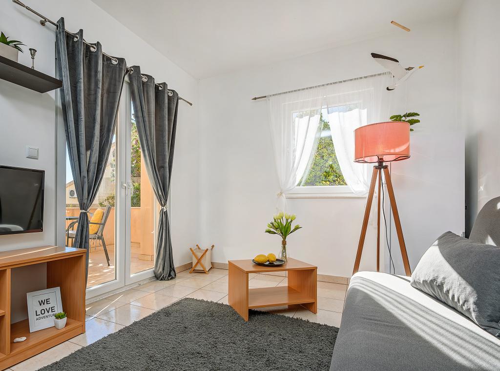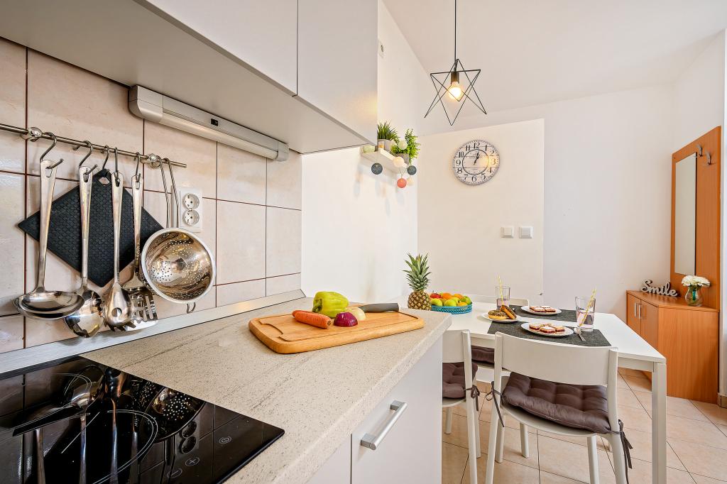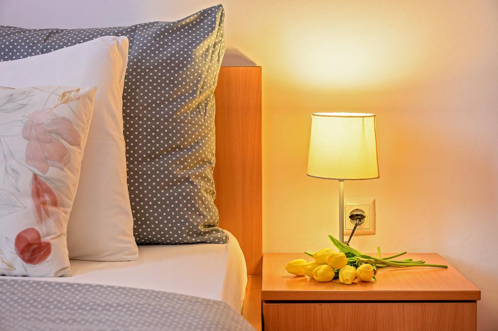 En savoir plus Unités d'hébergementLa taxe de séjour est incluse dans le prix. Chacun de nos appartements peut accueillir un maximum de 3 personnes - quel que soit leur âge. La réservation est considérée comme valide après versement d'un acompte de 30% sur notre compte. Le paiement de la réservation de l'hébergement est confirmé par e-mail. Le reste du montant est payé à l'arrivée. Si les clients annulent la réservation de l'hébergement dans les appartements, l'acompte ne sera pas restitué. Il peut être utilisé pour la prochaine réservation. Les appartements sont disponibles le jour de l'arrivée à partir de 14h00, et le jour du départ jusqu'à 10h00. Animaux sur demande.