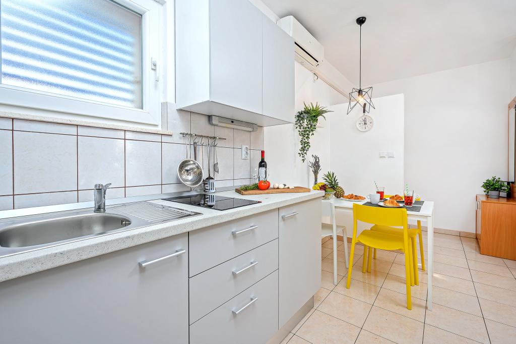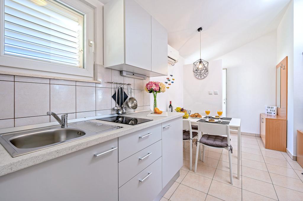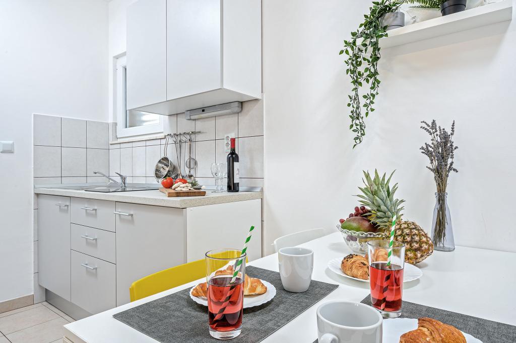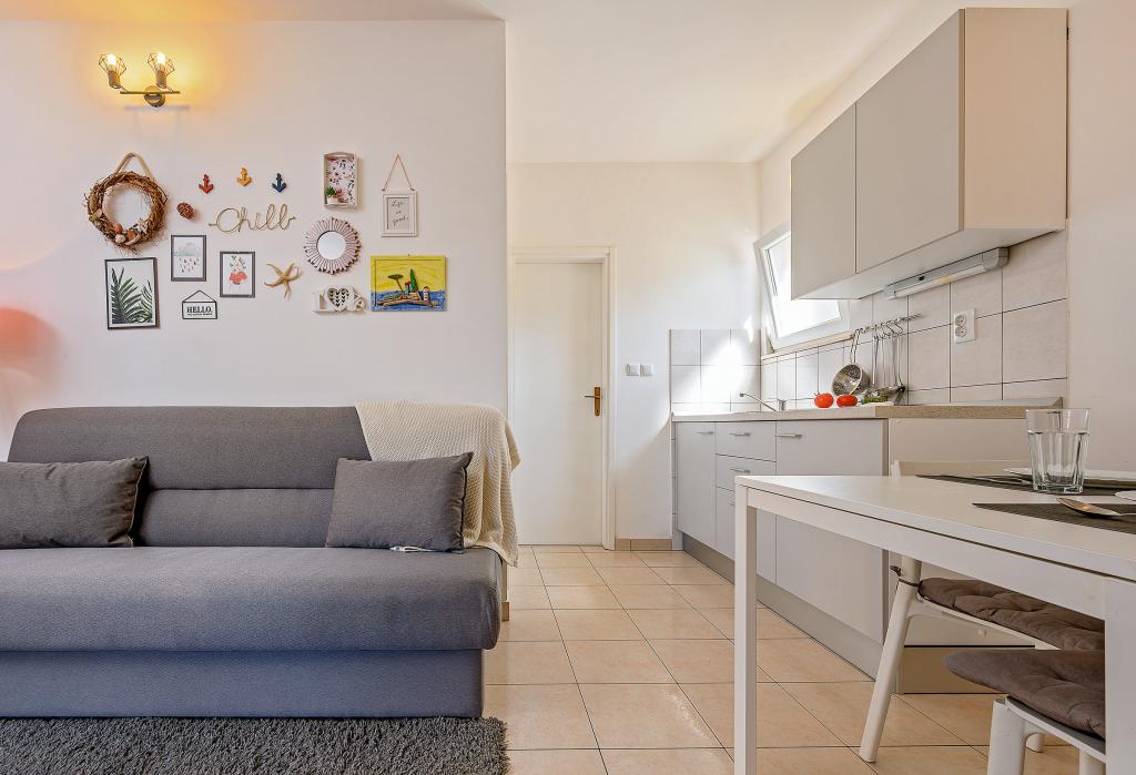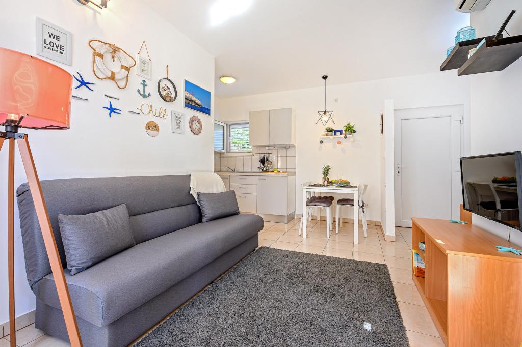 En savoir plus Unités d'hébergementLa taxe de séjour est incluse dans le prix. Chacun de nos appartements peut accueillir un maximum de 3 personnes - quel que soit leur âge. La réservation est considérée comme valide après versement d'un acompte de 30% sur notre compte. Le paiement de la réservation de l'hébergement est confirmé par e-mail. Le reste du montant est payé à l'arrivée. Si les clients annulent la réservation de l'hébergement dans les appartements, l'acompte ne sera pas restitué. Il peut être utilisé pour la prochaine réservation. Les appartements sont disponibles le jour de l'arrivée à partir de 14h00, et le jour du départ jusqu'à 10h00. Animaux sur demande.