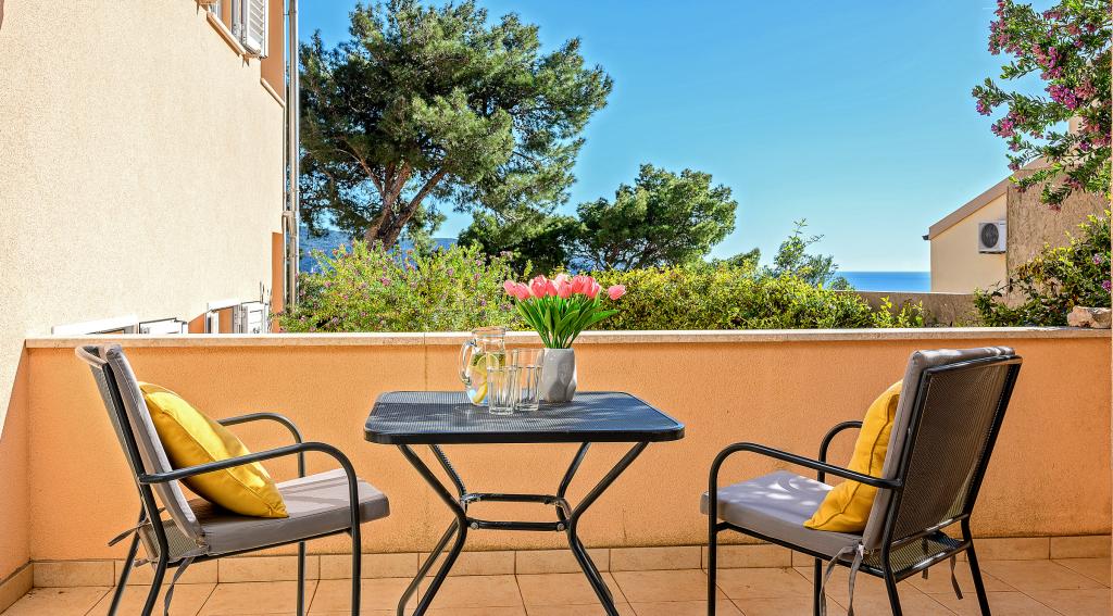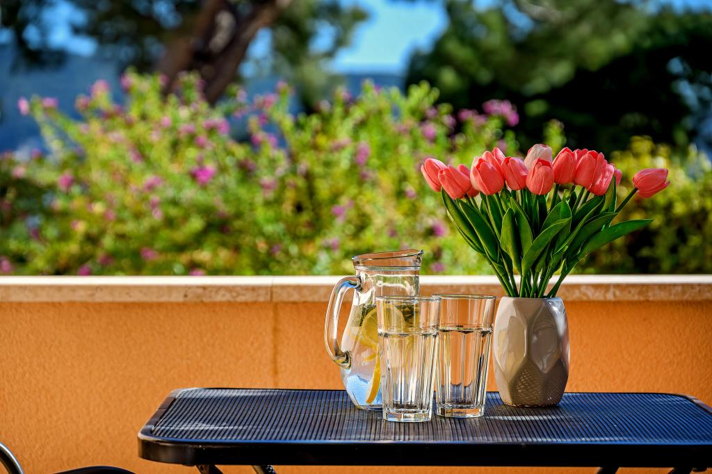 Nous proposons 6 appartements récemment rénovés (2 1) avec parking privé, entrées séparées et balcons offrant une vue sur la baie de la mer et les îles voisines. Nous sommes situés à quelques minutes du centre et de la plage de la ville. Idéal pour se détendre dans un environnement rempli de chants d'oiseaux et du bruit des vagues.