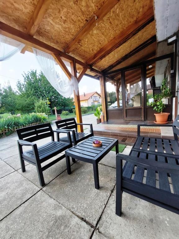 La maison de vacances "A House" est située dans la belle ville de Koprivnica, située dans la partie nord-ouest de la Croatie et à 100 mètres de l'autoroute Podravka. Cette maison de vacances offre une excellente combinaison de confort, de beauté et de paix, vous offrant l'endroit idéal pour se détendre et échapper au stress quotidien. La maison a été conçue en mettant l'accent sur l'espace et la fonctionnalité. Il se compose d'un salon spacieux, d'une cuisine entièrement équipée, d'une salle à manger, de chambres, de salles de bains et d'un WC supplémentaire. L'intérieur est décoré avec une attention aux détails, créant une ambiance chaleureuse et agréable. La maison de vacances "A House" dispose également d'un magnifique espace extérieur. Un grand jardin avec une pelouse verte, des fleurs et des arbres est idéal pour se détendre à l'extérieur. L'emplacement de la maison vous permet d'explorer la belle nature qui entoure Koprivnica. Vous pouvez faire des promenades à pied ou à vélo à travers les forêts et les lacs.Koprivnica est connue pour sa riche histoire et sa culture, vous pourrez donc explorer les sites touristiques de la ville.