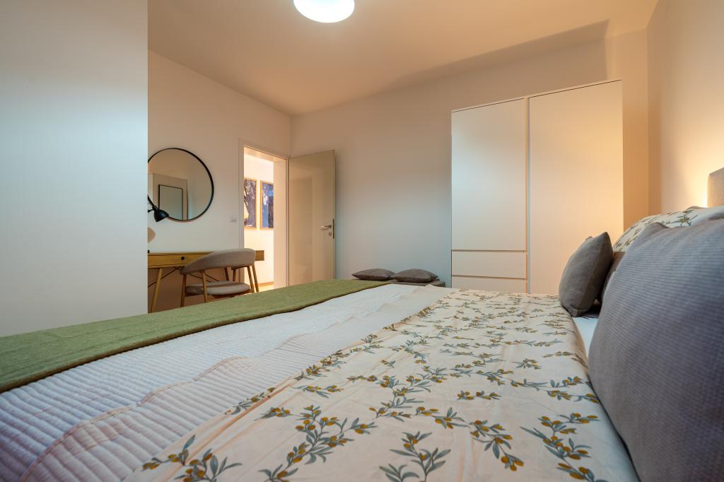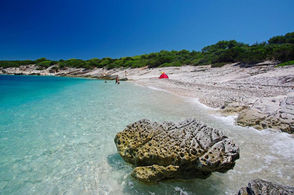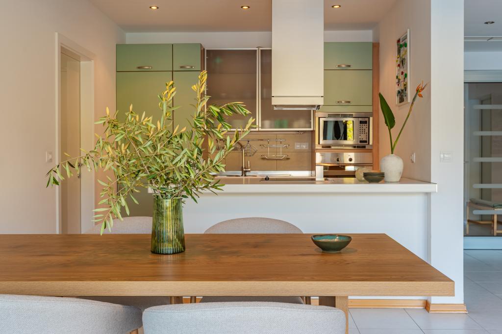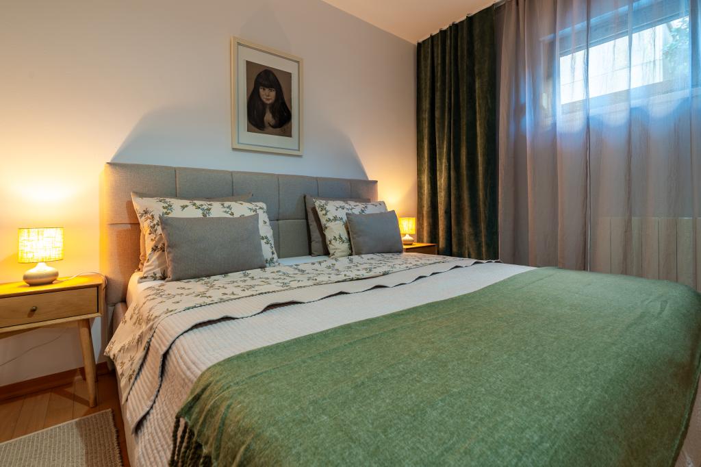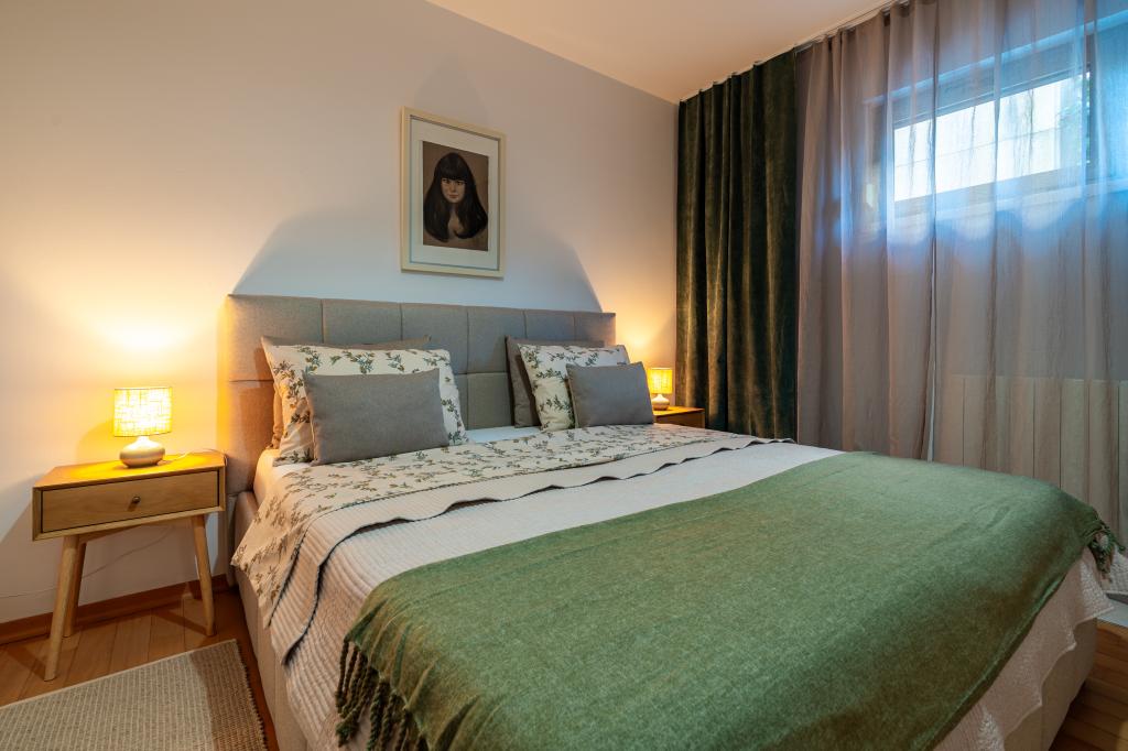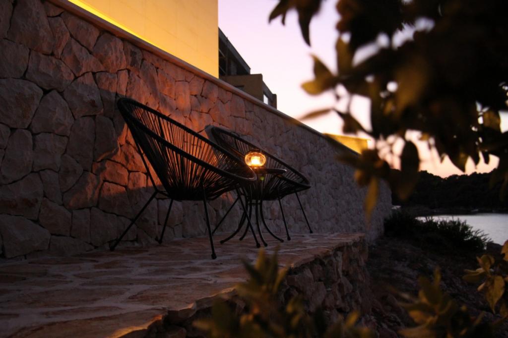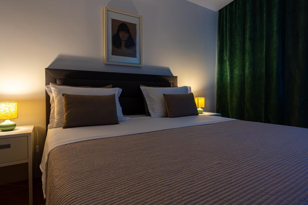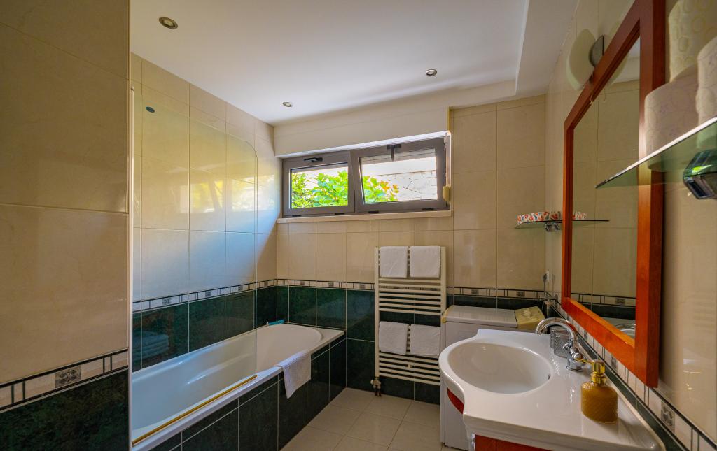 Villa Avantgarde - appartement directement en bord de mer pour 4 personnes - baie très calme - île de Korčula - Croatie C'est l'œuvre d'un célèbre architecte croate et de renommée mondiale. Il est situé dans une baie tranquille, à env. A 4 km du centre ville. Dans la villa, vous avez à votre disposition un appartement confortable d'env. 100 m2, qui se compose de 2 chambres, une salle de bain et un salon avec une cuisine bien équipée, une salle à manger et un salon, d'où on accède à une grande terrasse avec accès direct à la plage privée. La plage est à 9 m de l'appartement. Il n'y a qu'un seul appartement à louer dans la Villa. Il est entouré de pelouses bien entretenues, de verdure, du chant des oiseaux et de la mer. Un parking privé fermé est à la disposition des clients. La chambre, le salon, la salle à manger et la terrasse font face directement à la mer. Il peut être utilisé toute l'année car il est équipé du chauffage central.