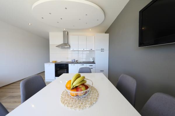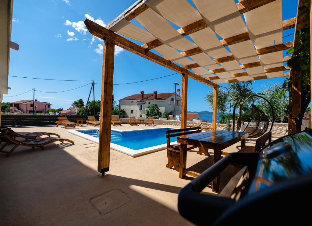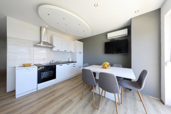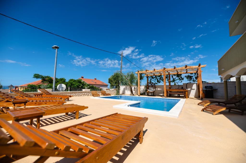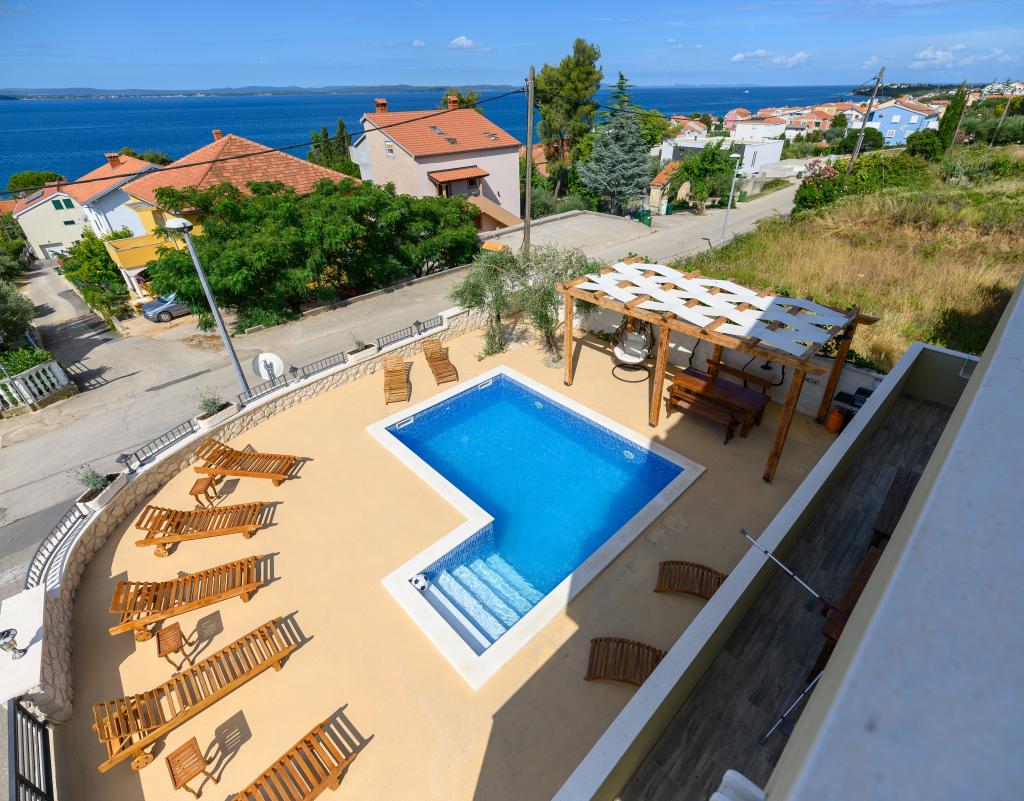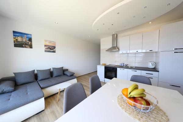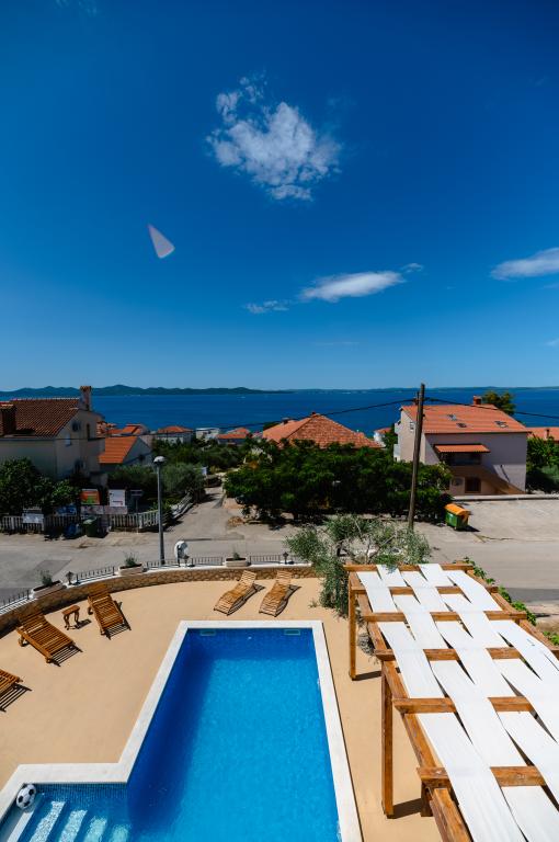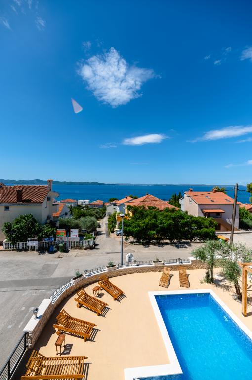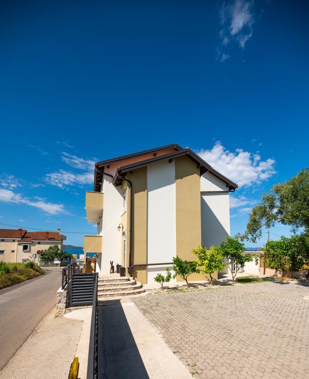 Bienvenue chers invités ! Pour tous ceux qui aiment le calme et la tranquillité, nous proposons un hébergement privé idéal qui vous offrira un confort suprême, un repos agréable et le sentiment d'être chez vous. Les appartements M offrant une vue magnifique sur le canal et les îles de Zadar sont situés à Kožin. Kožino est un endroit près de Zadar, à seulement 8 km du vieux centre de Zadar (église Saint-Donat, Salutation au Soleil, rue principale de Zadar Kalelarga, front de mer de Zadar, le plus beau coucher de soleil, ...) L'un des appartements est situé au rez-de-chaussée, et les deux autres appartements sont situés au deuxième étage de l'immeuble avec une belle vue sur la mer et la terrasse où se trouve la piscine. Les appartements se composent d'une cuisine et salle à manger, d'un salon, d'une salle de bain, de toilettes et de chambres. Chaque appartement dispose de 2 chambres. Les places de parking appartiennent aux appartements. Sur la terrasse à côté de la piscine, il y a un barbecue à la disposition de tous les clients et une aire de jeux pour enfants située dans la cour. Les appartements ont été récemment rénovés et entièrement modernes et équipés,...
