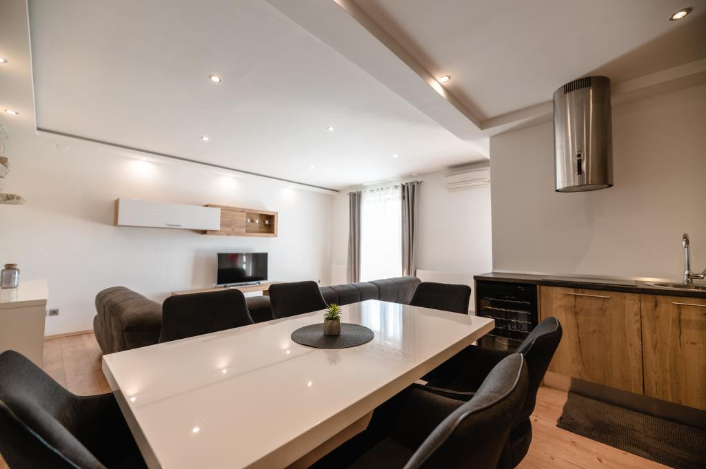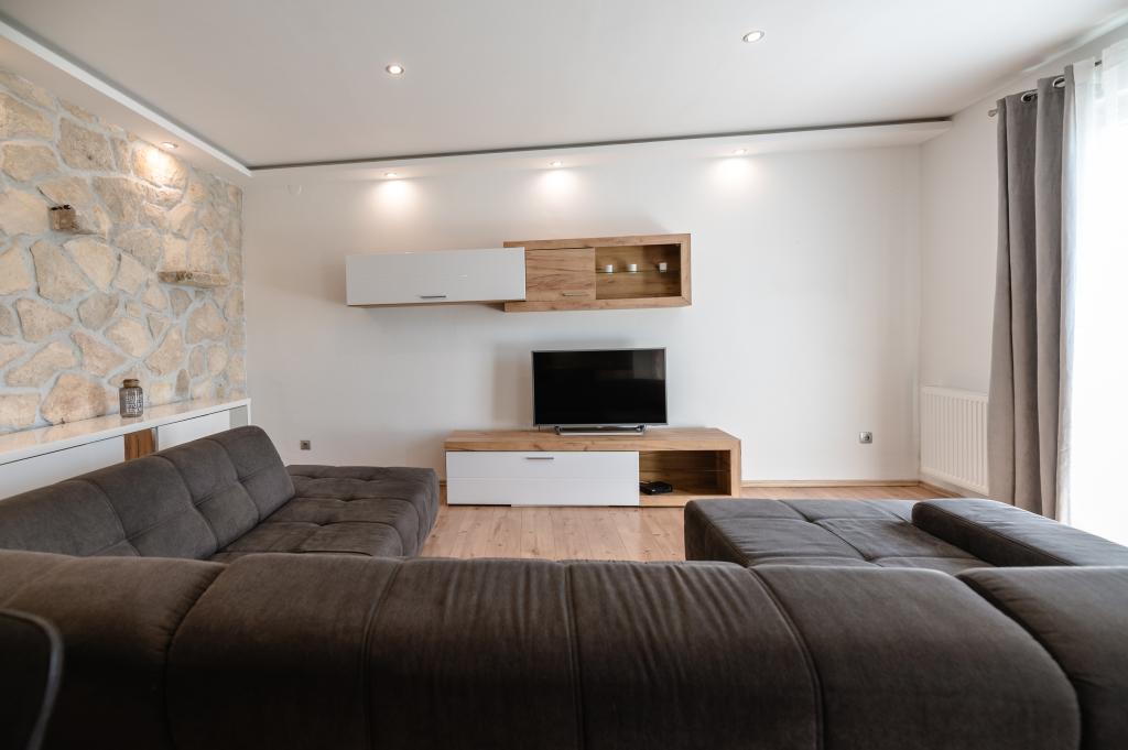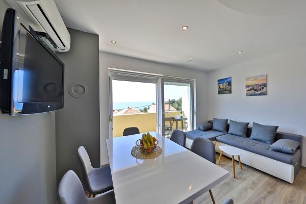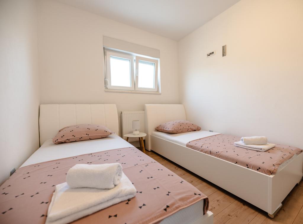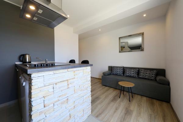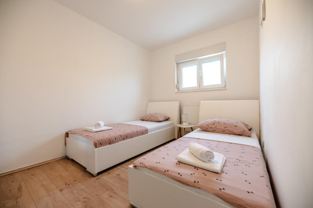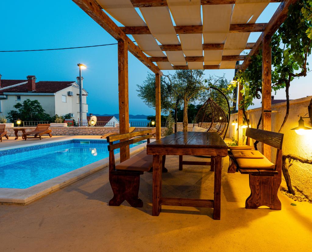 Bienvenue chers invités ! Pour tous ceux qui aiment le calme et la tranquillité, nous proposons un hébergement privé idéal qui vous offrira un confort suprême, un repos agréable et le sentiment d'être chez vous. Les appartements M offrant une vue magnifique sur le canal et les îles de Zadar sont situés à Kožin. Kožino est un endroit près de Zadar, à seulement 8 km du vieux centre de Zadar (église Saint-Donat, Salutation au Soleil, rue principale de Zadar Kalelarga, front de mer de Zadar, le plus beau coucher de soleil, ...) L'un des appartements est situé au rez-de-chaussée, et les deux autres appartements sont situés au deuxième étage de l'immeuble avec une belle vue sur la mer et la terrasse où se trouve la piscine. Les appartements se composent d'une cuisine et salle à manger, d'un salon, d'une salle de bain, de toilettes et de chambres. Chaque appartement dispose de 2 chambres. Les places de parking appartiennent aux appartements. Sur la terrasse à côté de la piscine, il y a un barbecue à la disposition de tous les clients et une aire de jeux pour enfants située dans la cour. Les appartements ont été récemment rénovés et entièrement modernes et équipés,...