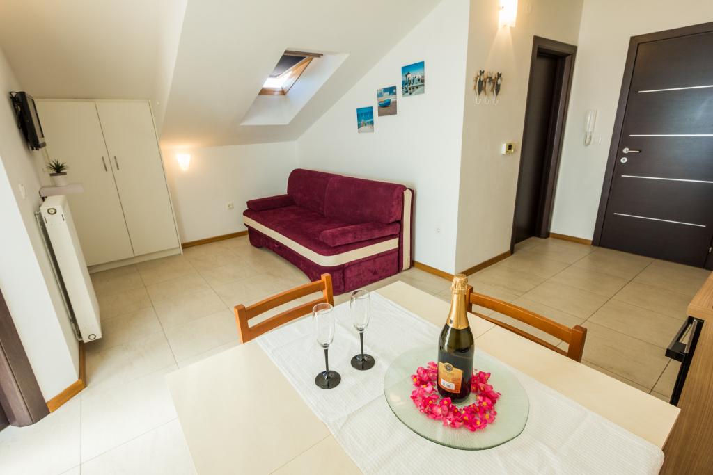 Cette année, nous avons séjourné dans un grand APP. Nous sommes 4 articles famille et avec nous il y avait 2 autres amis. Plus que suffisant, super équipée, la propreté, tout comme il devrait être. Haut Haut Nous avons apprécié le maximum et nous reviendrons plus Salutations de Migličevih