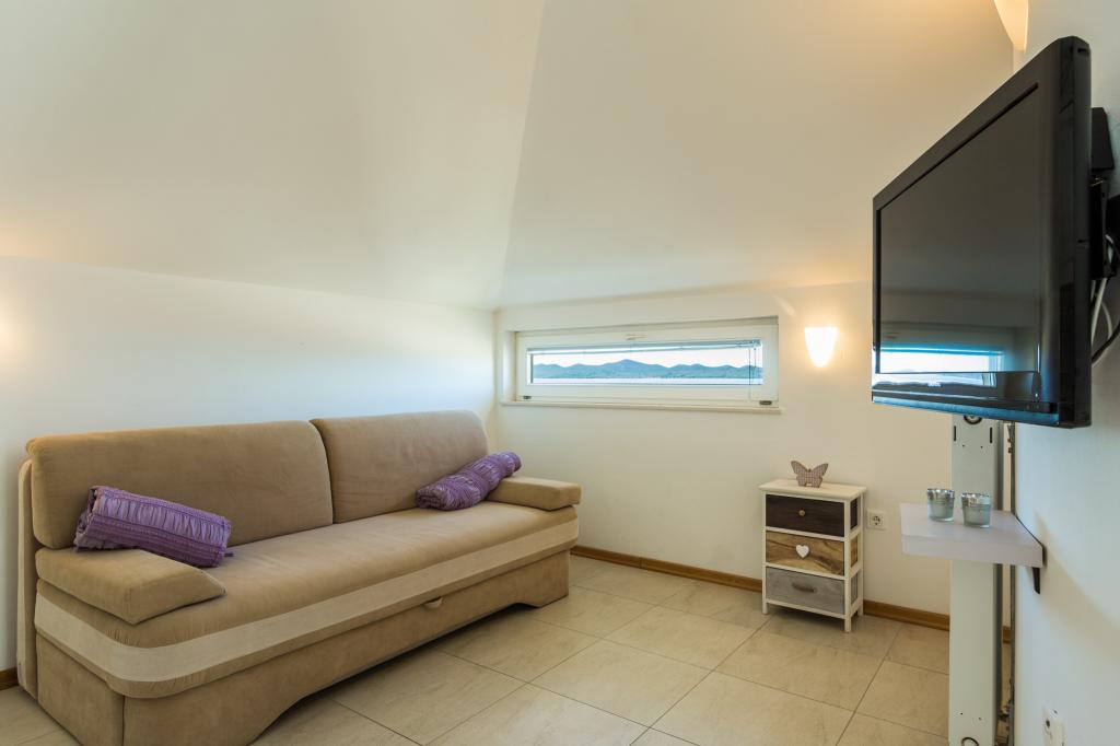 Très belles vacances dans un appartement confortable. Appartement très propre, confortable, rien en lui manquer. Belle vue sur la mer, est vraiment un morceau de la plage. Plages - soit des piliers ou des rochers en béton. Appartement fermer boutique et restaurant. Qui veut plus les supermarchés et dans les environs de Zadar. Nous remercions les propriétaires, qui sont toujours conseillaient, ils étaient aimables et serviables. Il était grand et fortement recommandé.