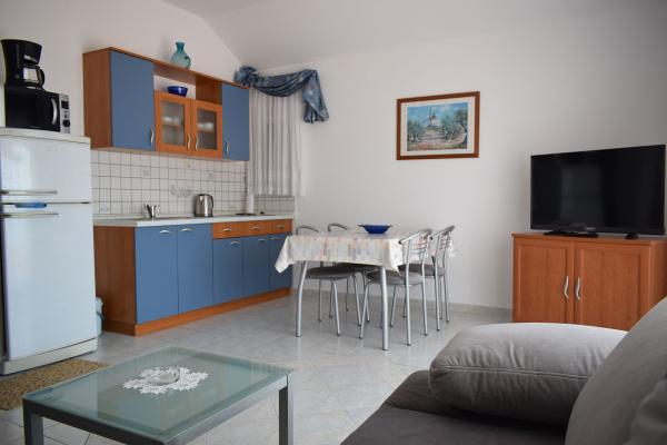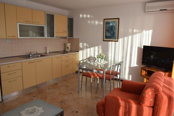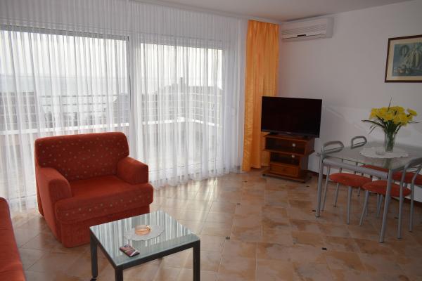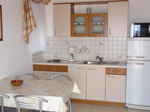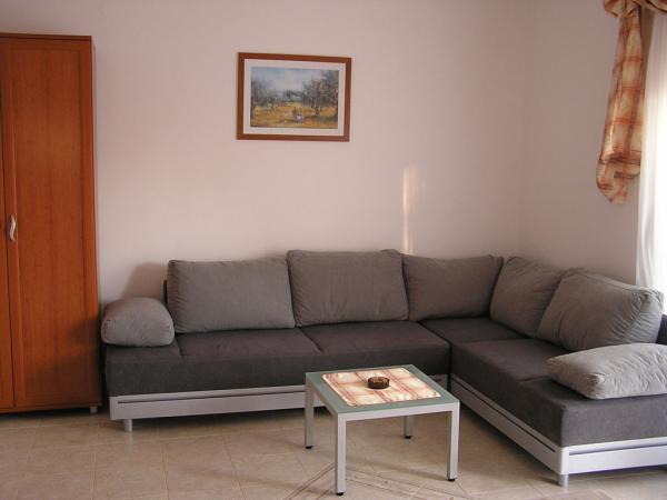 L'appartement que nous avions femme et moi et c'était tout simplement parfait. La disposition de l'appartement est entièrement conforme photos et a tout un client pourrait avoir besoin. Les propriétaires sont chaleureux et discret, et le quartier est totalement silencieux, pour de vraies vacances. Appartement terrasse est magnifique, et la vue est superbe. Entre les appartements et a construit une maison (dans la position inférieure de l'appartement), mais il est aussi beau et s'intègre parfaitement dans l'atmosphère, de sorte que même le moins dérangé (nous étions le plus bas dans l'appartement et n'avons pas l'esprit un peu). Lors du téléchargement, l'appartement était impeccable (même sous le lit, où nous avons gardé une valise), de sorte que l'appartement a absolument rien à redire. Un peu plus en ce qui concerne les terrasses - est vraiment énorme, avec une table et des chaises pour manger et socialiser, et avec beaucoup de place pour les choses de séchage au large de la plage, mais le soleil (le cas échéant). Et oui, un peu dans la mesure où le lit pour dormir. Lits en appartements ont tendance à être de toutes sortes, mais dans cette chambre le lit était parfait. Em est énorme (deux adultes et deux enfants seraient sur elle sans aucun problème ne pouvait pas dormir, même si officiellement pour 2 personnes) et elle n'a pas les bosses et les bosses. Fondamentalement, juste une maison confortable. La cuisine est petite mais a tout ce dont vous avez besoin. Éloge spécial pour le micro-ondes, nous avons vraiment bien servis et raccourcir la préparation des aliments. Frigo est une taille normale, avec congélateur intégré, donc il n'y a pas de problème avec la conservation des aliments pendant tout le séjour. La plage est à deux minutes à pied de l'appartement et il ya quelque chose pour tout le monde - la plage de galets, béton, pierre ... et personne sur il n'y avait pas foule. Sur les plages, il n'y a pas de toilettes ou de douches, mais que l'appartement est très proche, c'est pas un problème. Le magasin se trouve à 5 minutes à pied, ainsi que deux restaurants / tavernes. En ce qui concerne la position de l'appartement, un lieu sur la carte montrée tout à fait exact et ne peut pas trouver n'importe quel problème. Pendant notre séjour, le temps était relativement faible, de sorte que la plupart des jours, nous sommes allés
