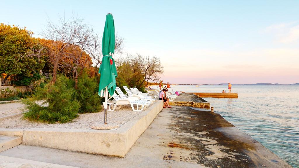 Taxe de sejour est inclus dans le prix.parking une voiture par appartement possibilité de louer un bateau plage peu profonde pour les jeunes enfants et les non-nageurs à proximité (50m) piste cyclable Zadar-Diklo-Kožino-Petrčani-Source Fermer bicyclettes, bateaux, avions, chaises longues, Internet, consoles de jeux, gastronomie, excursions, chaises de plage ...
