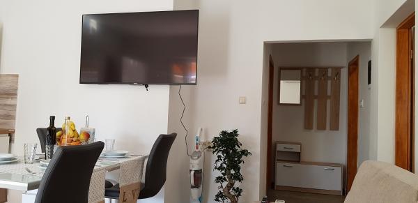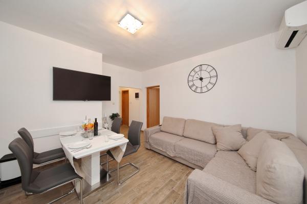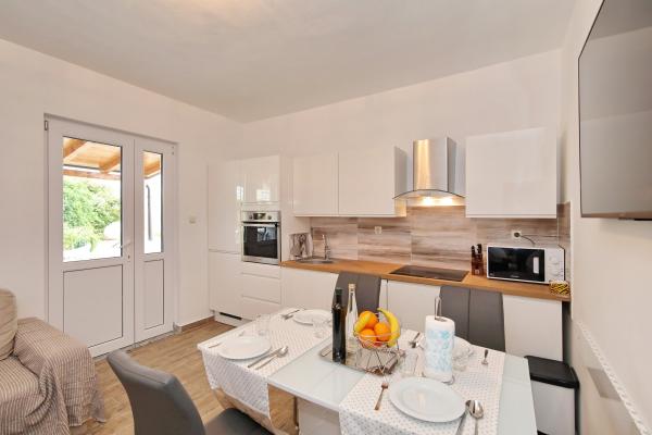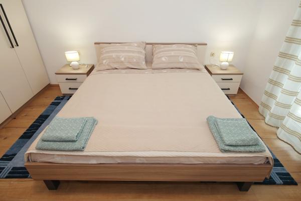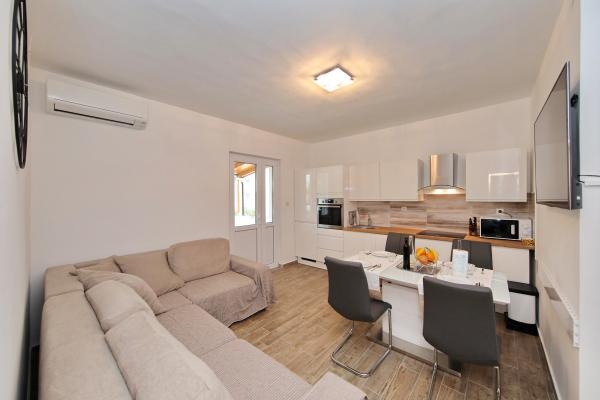 Appartement nouvellement adapté (4 1) est situé au rez-de-chaussée d'une maison de famille à seulement 70m de la mer et une plage de sable peu profonde adaptée pour les petits enfants. L'appartement se compose d'une cuisine et d'un salon avec un fauteuil gigogne, de grandes terrasses ensoleillées, de deux chambres, d'une salle de bain, d'un barbecue commun et d'un parking privé. L'appartement est climatisé et équipé d'ustensiles de cuisine et d'ustensiles de cuisine. La cuisine et le salon contiennent des appareils ménagers modernes tels que des réfrigérateurs avec congélateur, four, plaques à induction, micro-ondes, lave-vaisselle, télévision par satellite et en ligne et Internet.