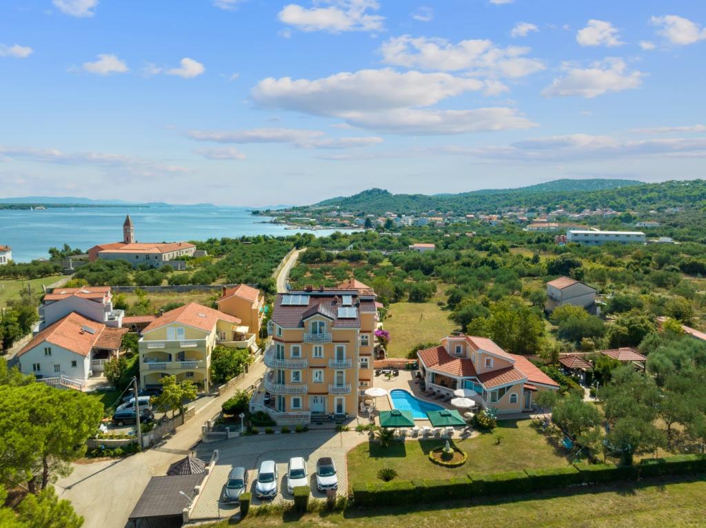 Crown Villa est un luxueux hôtel 4 étoiles qui peut accueillir 30 personnes. Villa est le premier d'une série, situé dans un bel emplacement sur la plage de sable fin avec une vue sur le canal de Pasman. Jardin avec une riche végétation méditerranéenne qui entoure la villa et le rend particulièrement attrayant. Dans le jardin il ya une piscine chauffée avec éclairage. La villa dispose de 7 suites spacieuses, chacune décorée d'une manière spéciale. Chaque appartement possède un balcon ou d'une terrasse donnant sur la mer, plage et jardin villas.