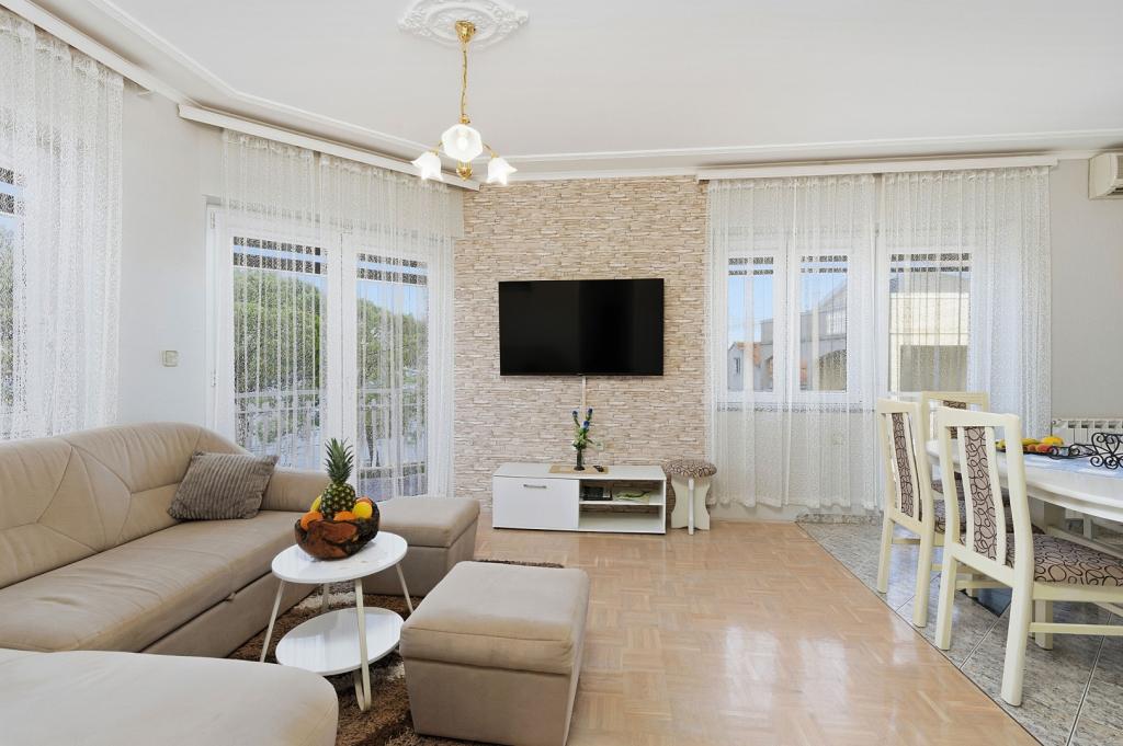 Taxe de sejour n'est pas incluse dans le prix.Nous offrons aussi la possibilité de demi-pension par arrangement dans notre restaurant pour les clients seulement. En collaboration avec les organismes locaux et les voyagistes sont capables d'organiser diverses excursions, location de bateaux et de bateaux, location de voiture, vélo, etc Villa Couronne est particulièrement adapté pour ceux qui veulent la paix et l'intimité parfaite, mais veulent aussi aller sur les visites de l'île, archipel, la terre, ou des nombreux parcs nationaux et parcs naturels (NP Kornati, NP Krka, Paklenica NP, PP Vrana , Telascica).