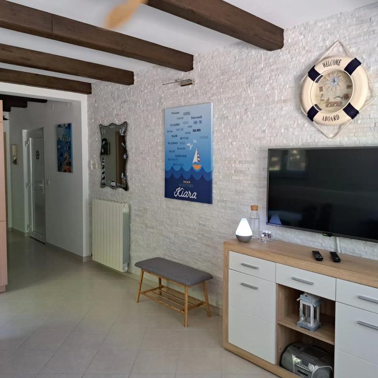 Nous étions dans l'appartement Kiara dans le 6ème mois. Cette année. L'appartement est très spacieux, bien équipés et nous sommes fascinés par la façon dont le tout-clair, brillant et propre. Situé dans une rue calme près de la mer et des commerces. La cour est bien clôturé et est un endroit idéal pour les familles avec enfants. Les hôtes étaient très accueillants et attentionné.