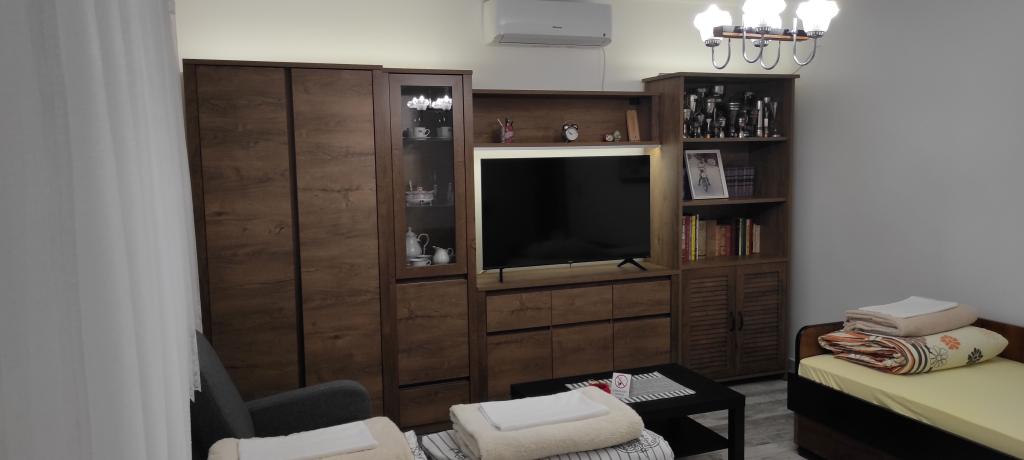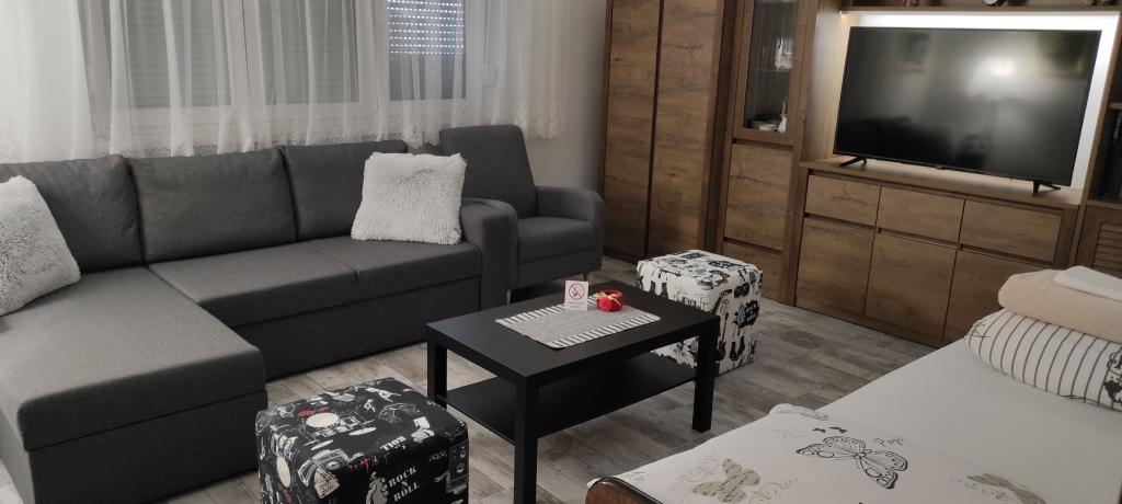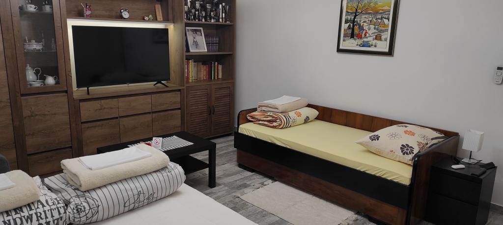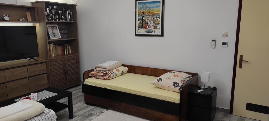 Appartement entièrement et modernement équipé (climatisation, chauffage au sol, éclairage LED + éclairage industriel avec télécommande, 2 TV 50", wi-fi gratuit, etc.) pour 1 à 5 personnes + un lit supplémentaire pour une personne. TP L'appartement est situé en plein centre de Križevci, dans la rue principale de la vieille ville, et les magasins et restaurants sont à proximité ! Tout ce dont vous avez besoin (magasins, restaurants, cafés, distributeurs automatiques de billets, banque, pharmacie, sites touristiques, musées, galeries, piscine piscines, terrains de sport) sont accessibles à pied en quelques minutes.Le personnel parle : anglais, croate