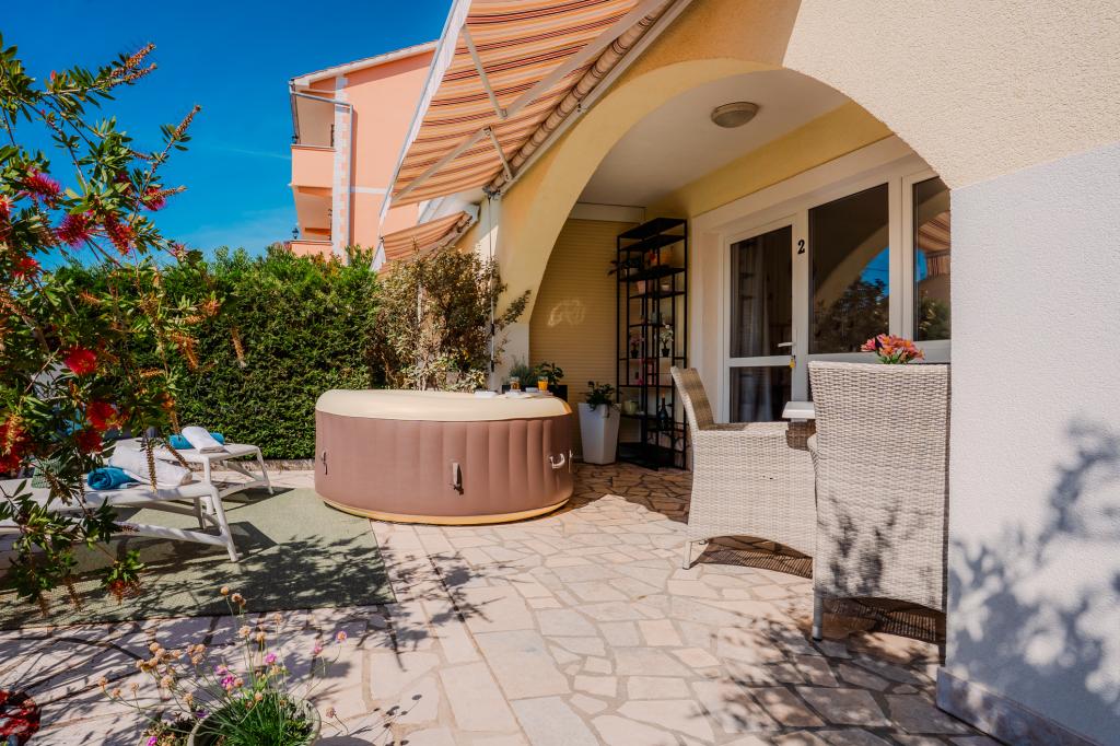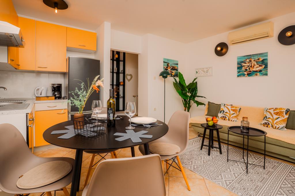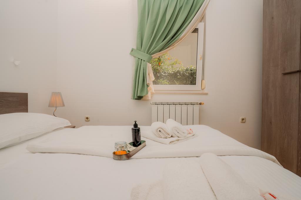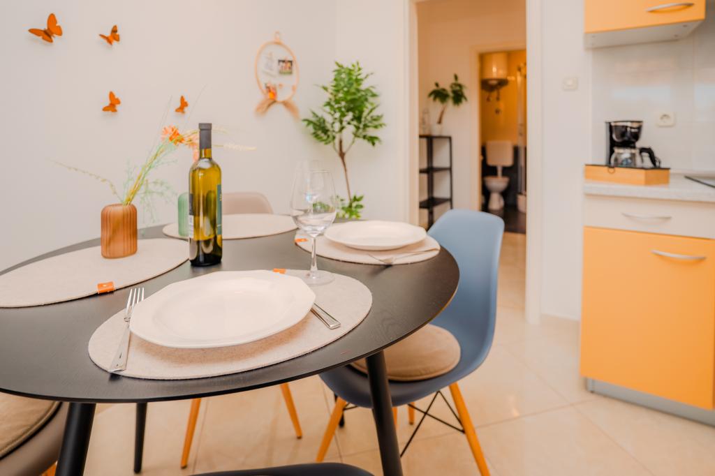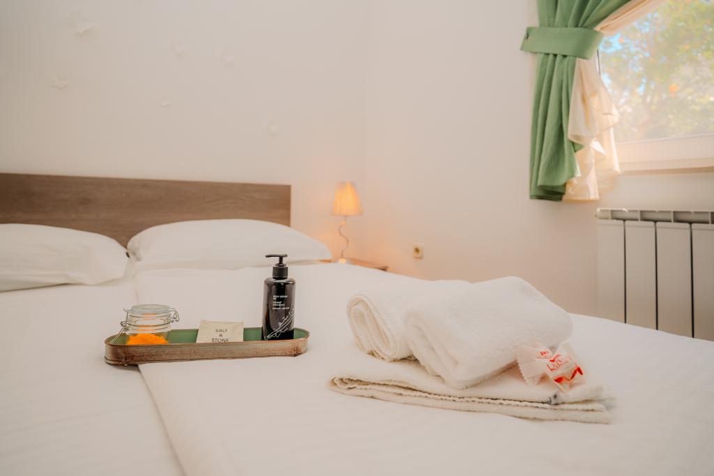 Les clients de l'appartement Fanuko bénéficient de nombreux avantages pour un séjour encore plus agréable. Sur demande, il est possible de réserver un emplacement pour bateau à proximité de l'appartement. Nous offrons à tous nos clients une réduction de 10 % au restaurant familial « Žal » à Klimno, réputé pour ses spécialités de poisson frais et sa cuisine locale. En signe de bienvenue, nous avons préparé une boisson de bienvenue et un coffret beauté et bien-être pour vous permettre de vous détendre dès votre arrivée. Tous ces avantages sont conçus pour rendre votre séjour aussi relaxant que possible, imprégné des saveurs, des parfums et de l'atmosphère d'authentiques vacances méditerranéennes. Lit supplémentaire pour la troisième et la quatrième personne : 9 €/jour. Animaux de compagnie bienvenus : 10 €/jour. Lave-linge : partagé ; 5 € par utilisation. Climatisation : sur demande/9 €/jour. Jacuzzi chauffé : 20 €/jour. Les clients de nos appartements bénéficient d'une réduction de 10 % au restaurant familial « Žal » à Klimno. Pour un séjour de trois nuits ou moins, le prix est majoré de 30 %.