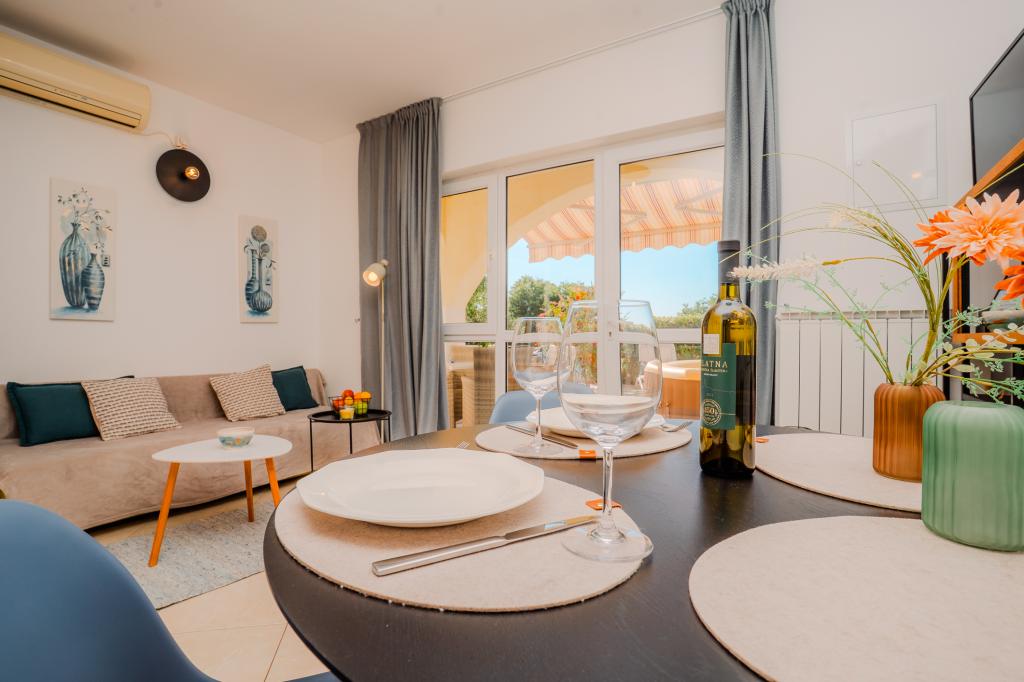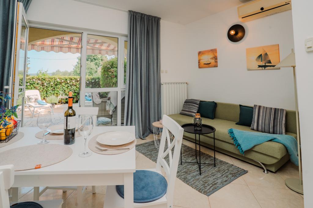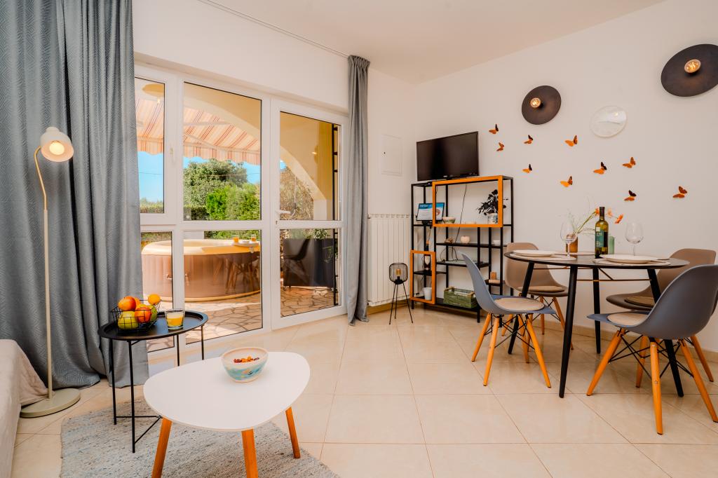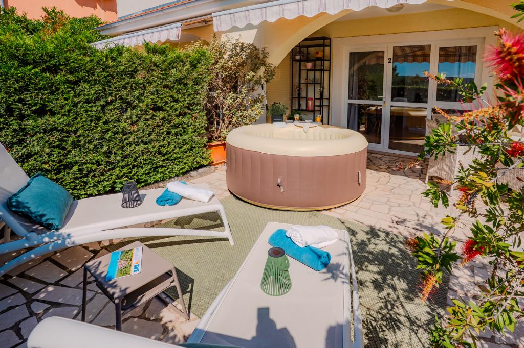 Quatre appartements à la décoration moderne sont situés dans le paisible village de Čižići, sur l'île de Krk, parfaits pour des vacances en famille ou en amoureux. Les appartements 1 et 2, situés au rez-de-chaussée, disposent de terrasses avec chaises longues entourées d'une végétation méditerranéenne parfumée. L'appartement 2 bénéficie en plus d'un jacuzzi chauffé et d'un coin salon à l'ombre des oliviers. Les appartements 3 et 4, au premier étage, possèdent un balcon avec vue sur la mer. Tous les appartements sont climatisés et équipés d'une connexion Wi-Fi gratuite, de la télévision par satellite, d'une cuisine équipée, d'une salle de bains, du linge de lit et des serviettes, ainsi que d'un parking gratuit. Les animaux de compagnie sont les bienvenus. La plage se trouve à 500 mètres.