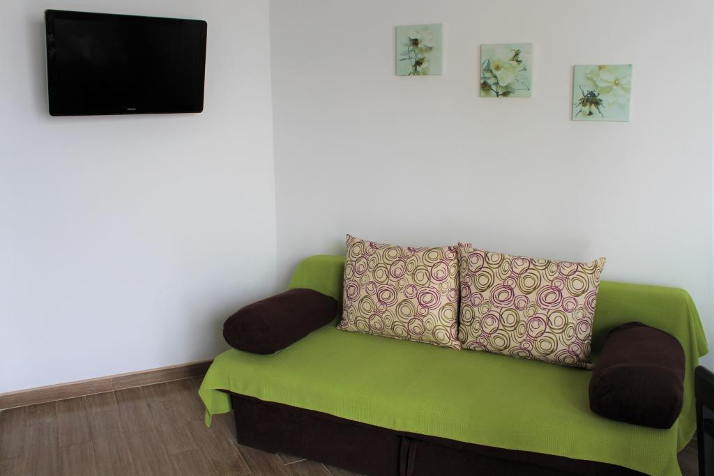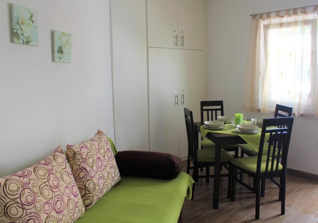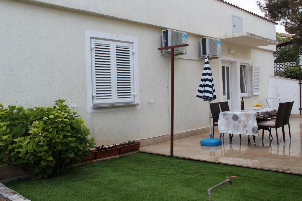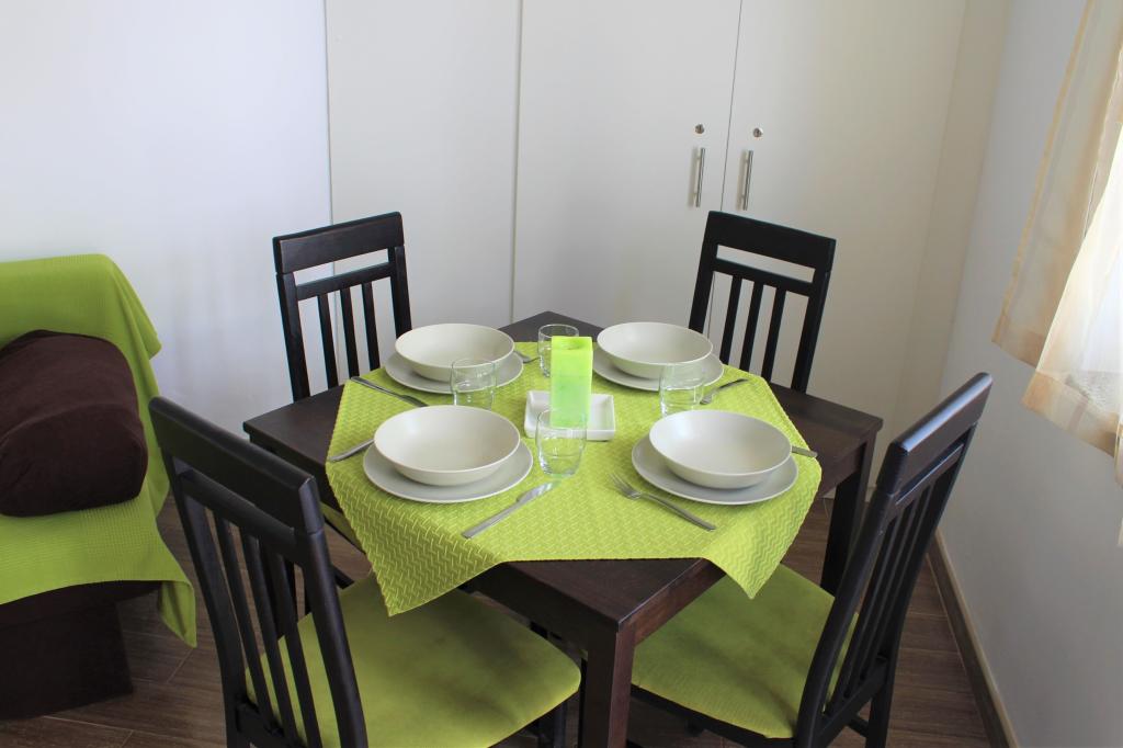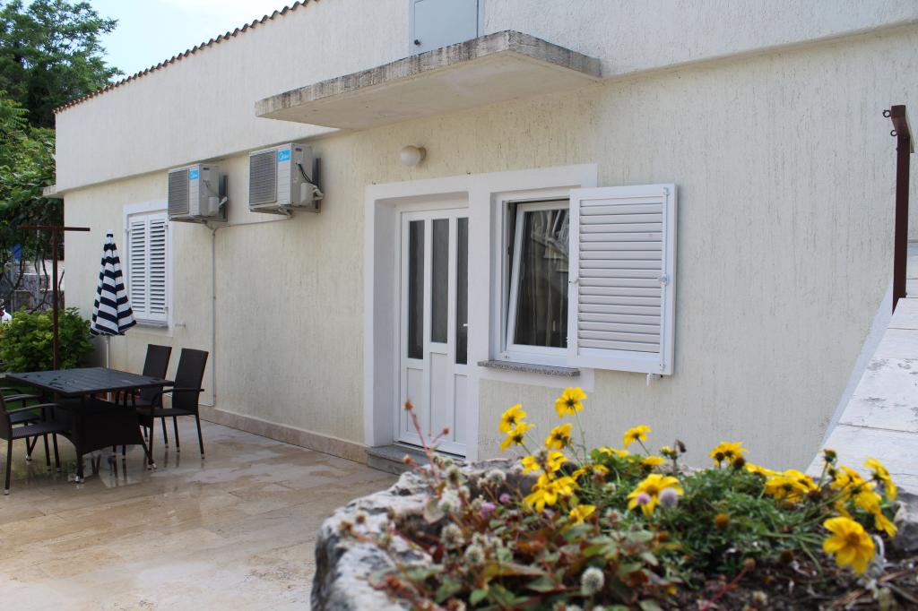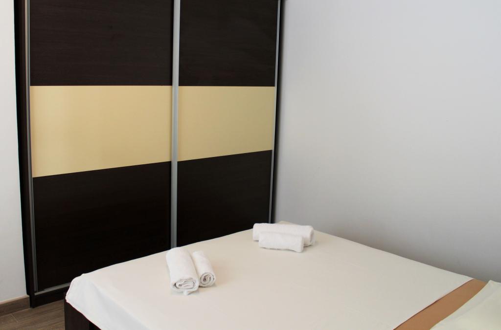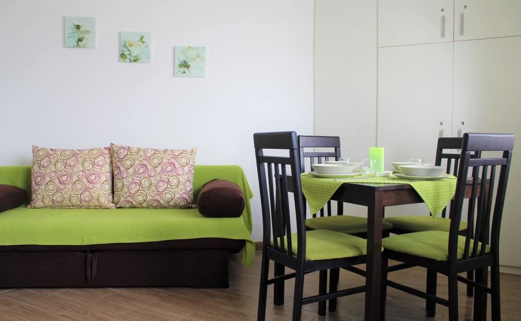 Cet appartement est situé dans un quartier calme. Il dispose d'une terrasse donnant sur le jardin. Il est situé à 5 minutes à pied de la plage et du centre. C'est près de la gare routière. Il dispose d'une connexion Wi-Fi gratuite et d'un parking privé. La cuisine est équipée d'un four, d'un réfrigérateur, d'une bouilloire et d'une machine à café. Le linge de lit et les serviettes sont disponibles.