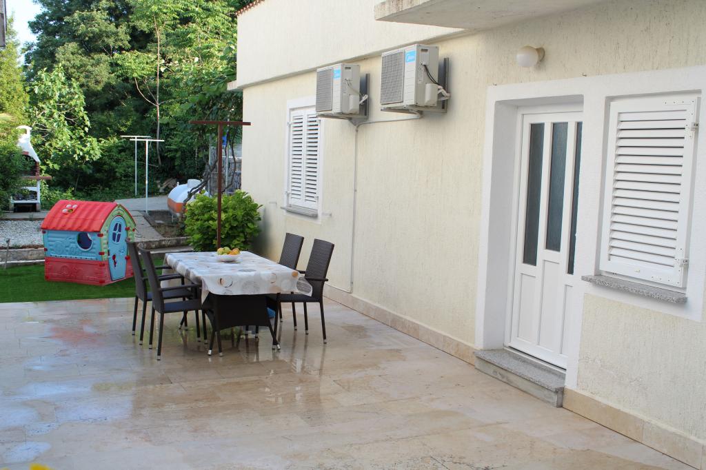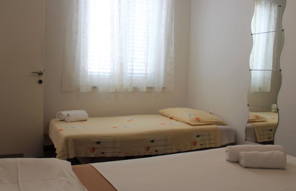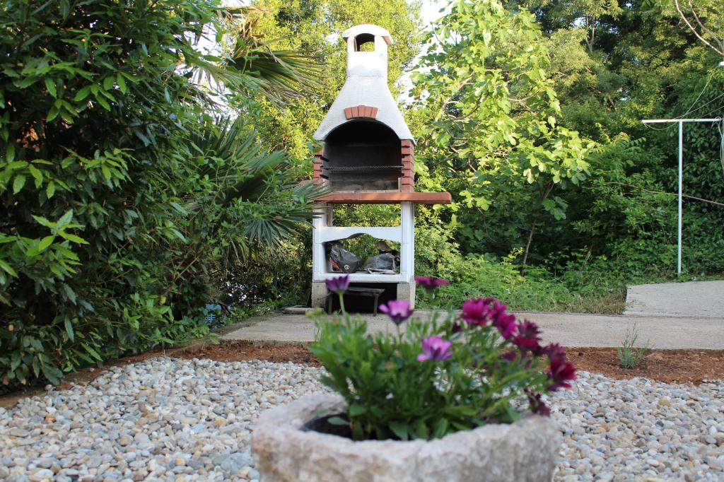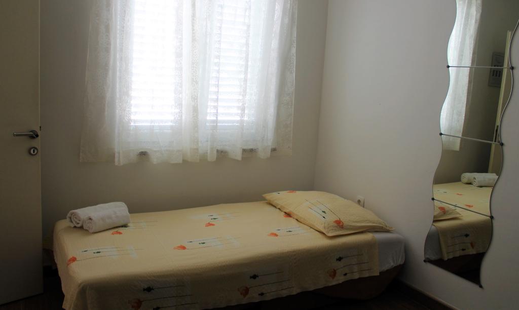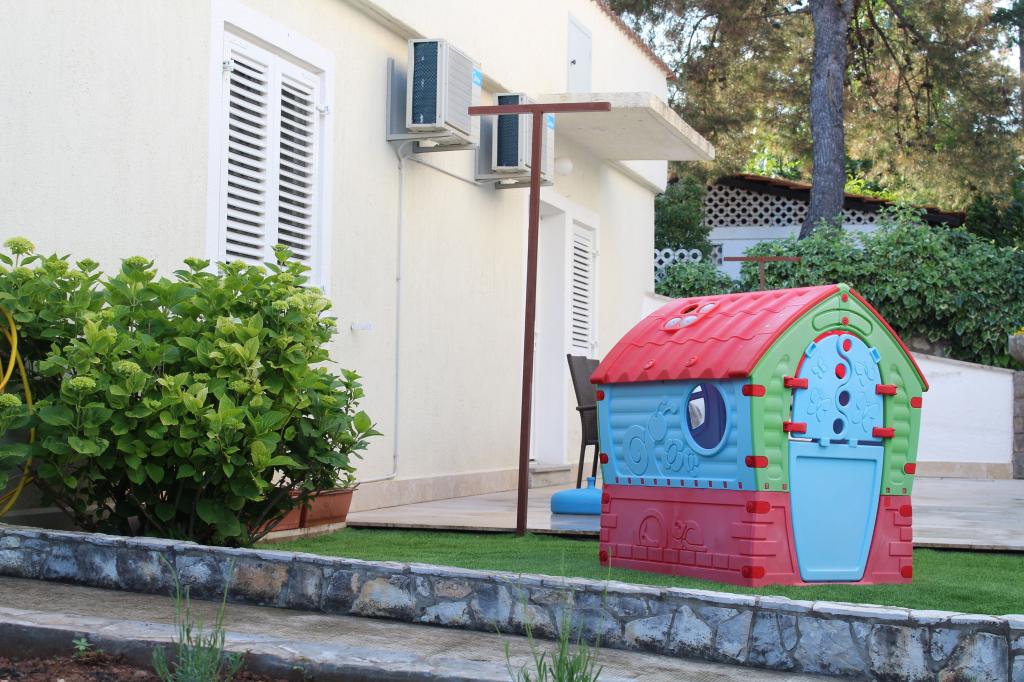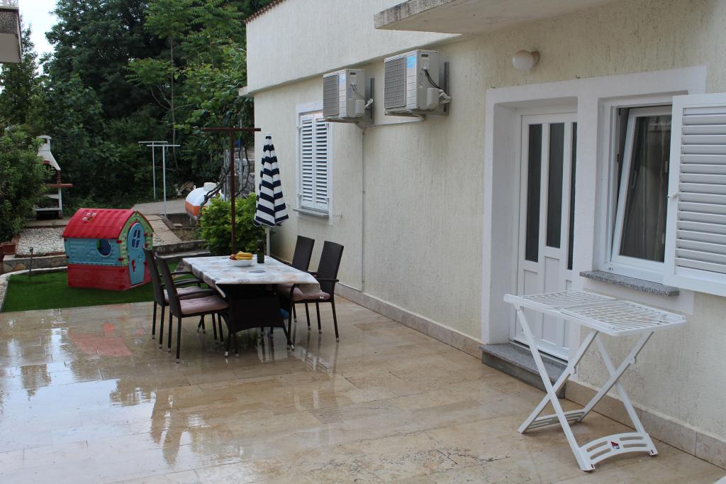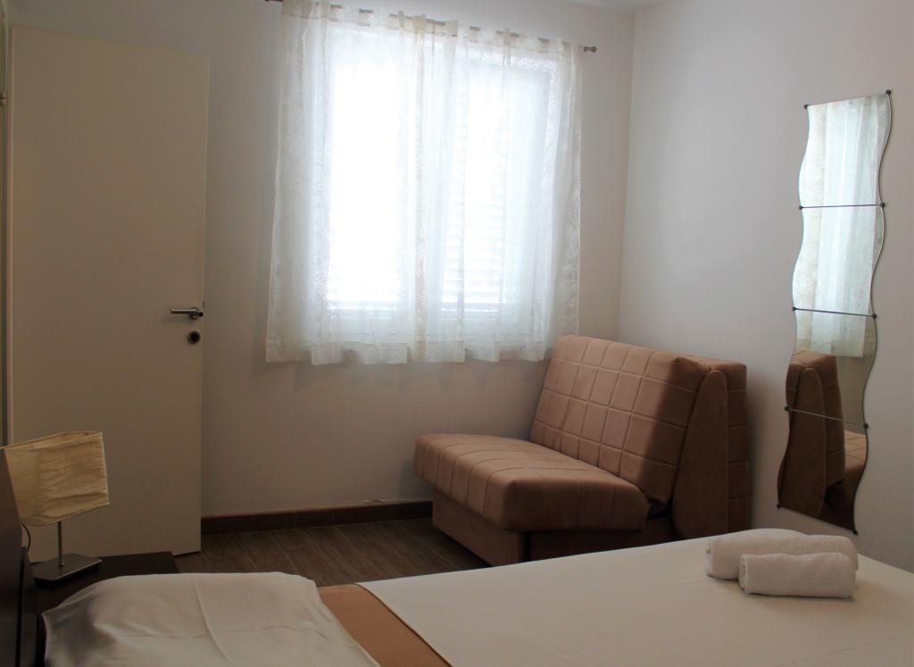 Cet appartement est situé dans un quartier calme. Il dispose d'une terrasse donnant sur le jardin. Il est situé à 5 minutes à pied de la plage et du centre. C'est près de la gare routière. Il dispose d'une connexion Wi-Fi gratuite et d'un parking privé. La cuisine est équipée d'un four, d'un réfrigérateur, d'une bouilloire et d'une machine à café. Le linge de lit et les serviettes sont disponibles.