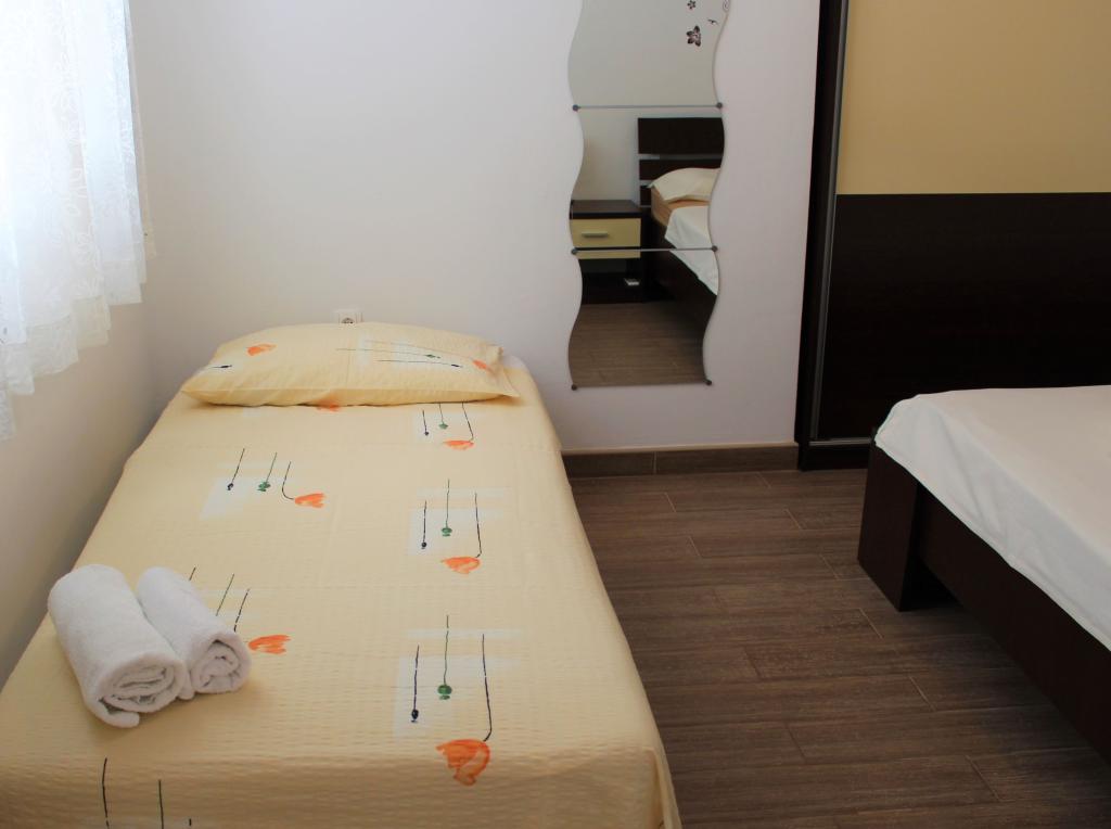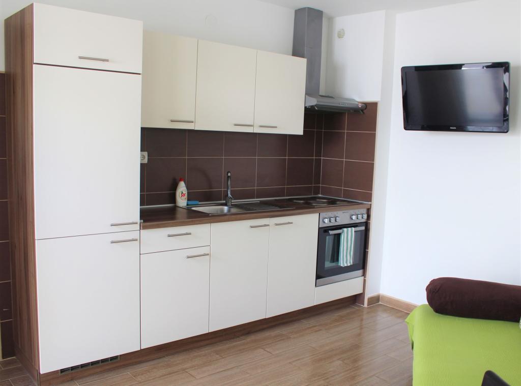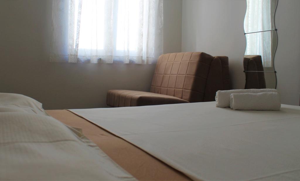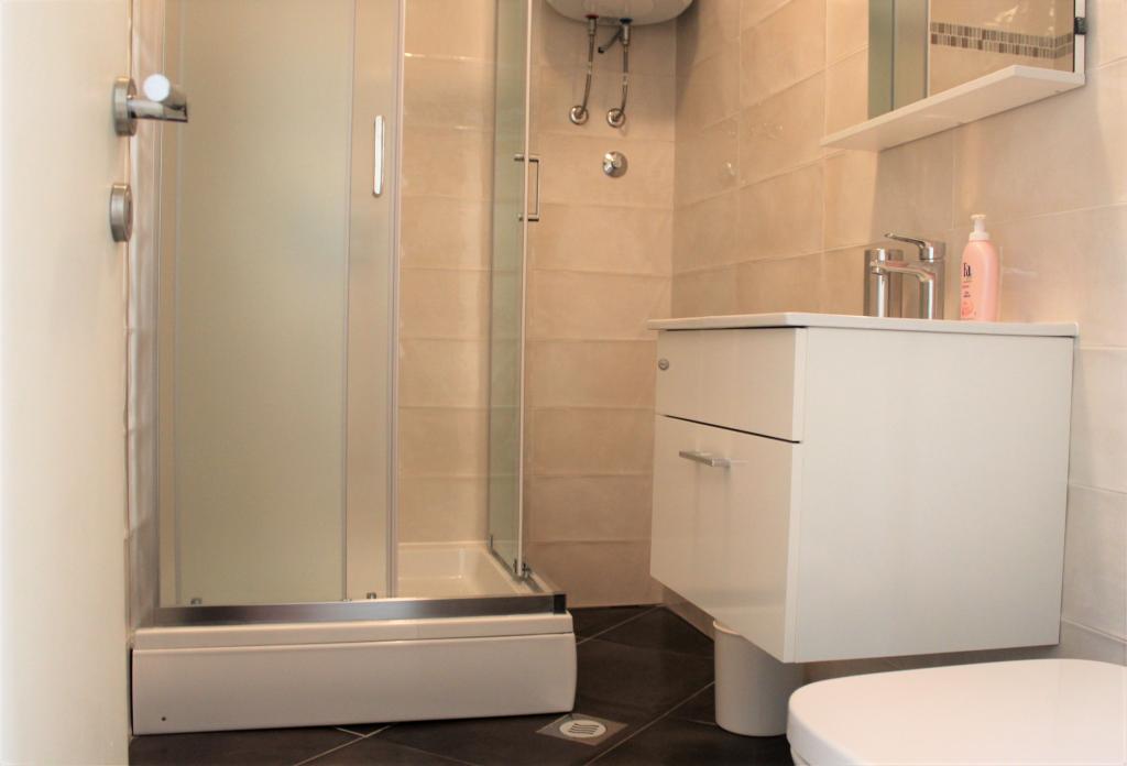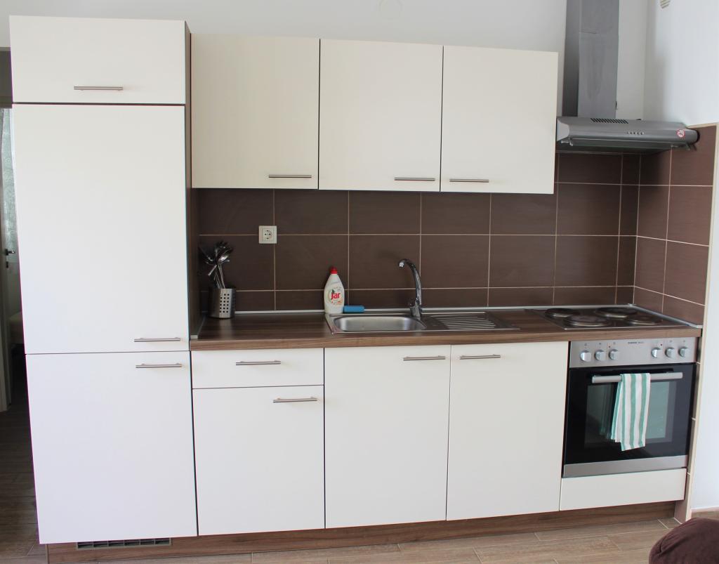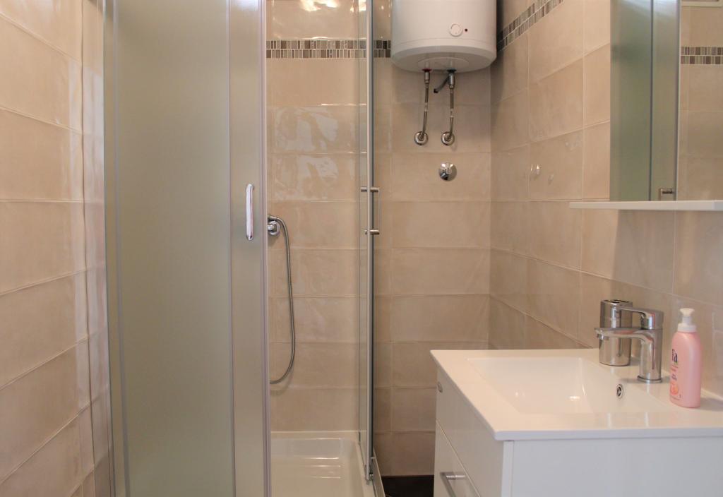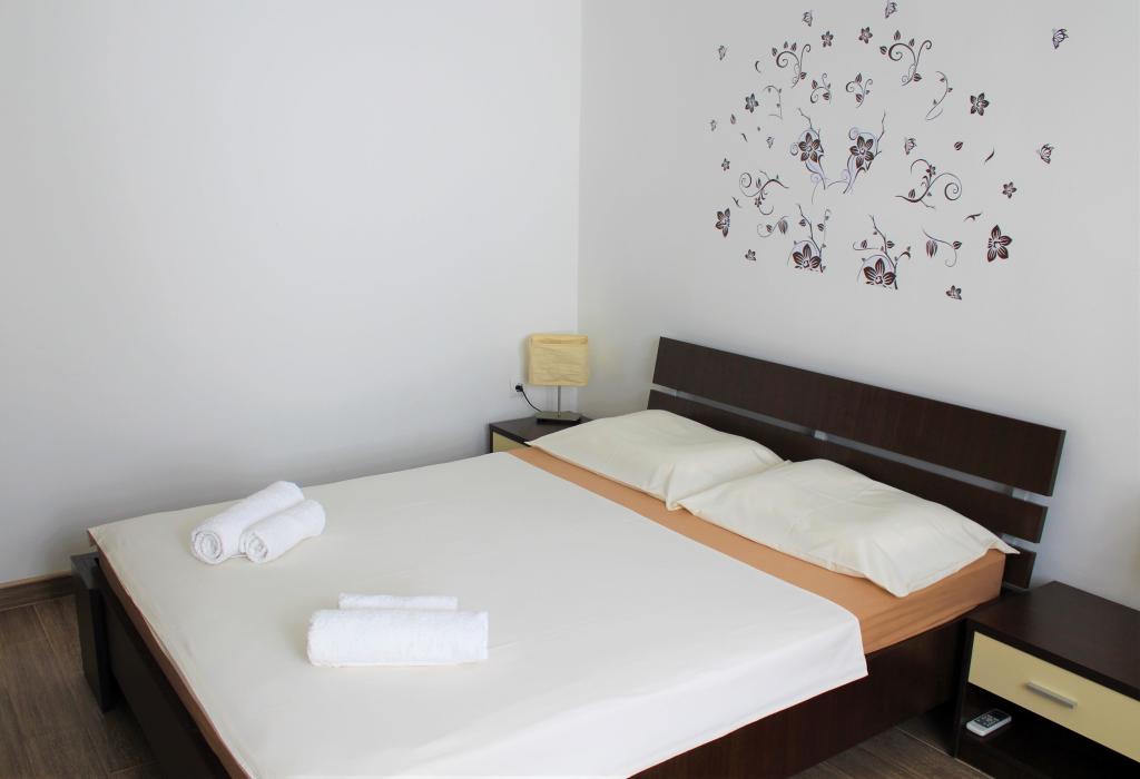 Cet appartement est situé dans un quartier calme. Il dispose d'une terrasse donnant sur le jardin. Il est situé à 5 minutes à pied de la plage et du centre. C'est près de la gare routière. Il dispose d'une connexion Wi-Fi gratuite et d'un parking privé. La cuisine est équipée d'un four, d'un réfrigérateur, d'une bouilloire et d'une machine à café. Le linge de lit et les serviettes sont disponibles.