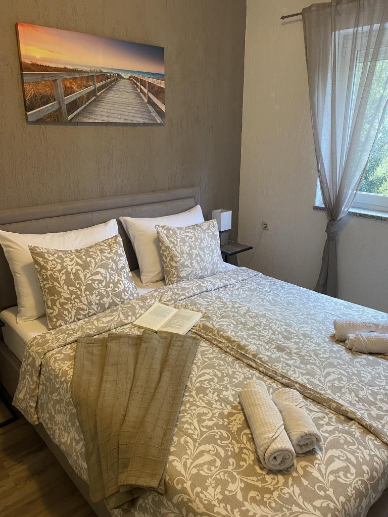 Taxe de sejour est inclus dans le prix. Document de confirmation de réservation lors de la réservationL'enregistrement s'est déroulé sans problème. Une petite bouteille de liqueur maison et des biscuits nous attendaient sur la table à manger. L'appartement est joliment meublé et le jardin, magnifiquement aménagé, dispose d'un barbecue en pierre et d'un coin salon. C'est un endroit très agréable où il fait bon s'attarder. La propriétaire est également très sympathique et serviable. La plage est à seulement 5 minutes à pied. On y trouve également deux bons restaurants. La magnifique vieille ville de Krk est également à 15 minutes à pied. Nous avons tout aimé et recommandons cet appartement. Nous nous y sommes sentis très bien.
