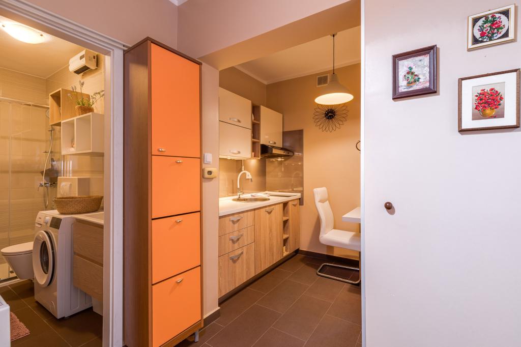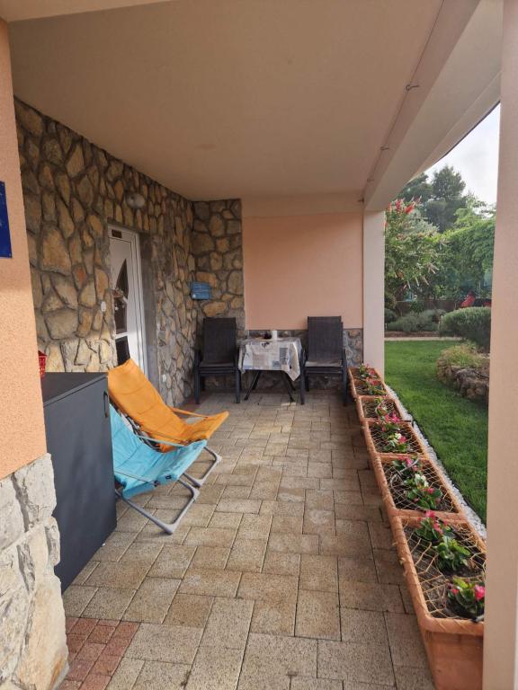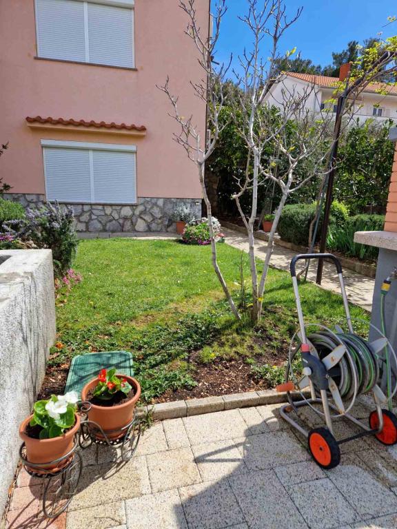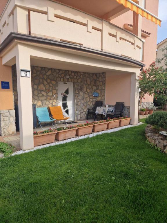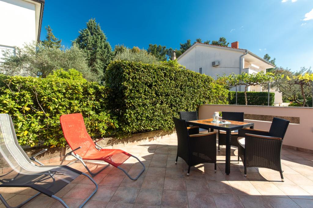 Appartements modernes équipés dans un quartier calme de la ville de Krk, à proximité de toutes les commodités. La propriété est située à 5 minutes à pied de la plage, à 10 minutes du centre. L'APP1 est situé au premier étage avec une grande terrasse, et l'APP 2 et l'APP 3 sont au rez-de-chaussée. Chaque appartement dispose de sa propre place de parking.