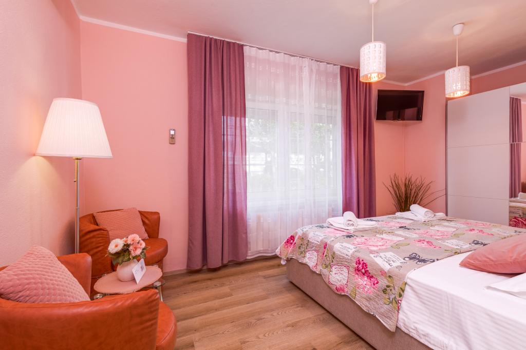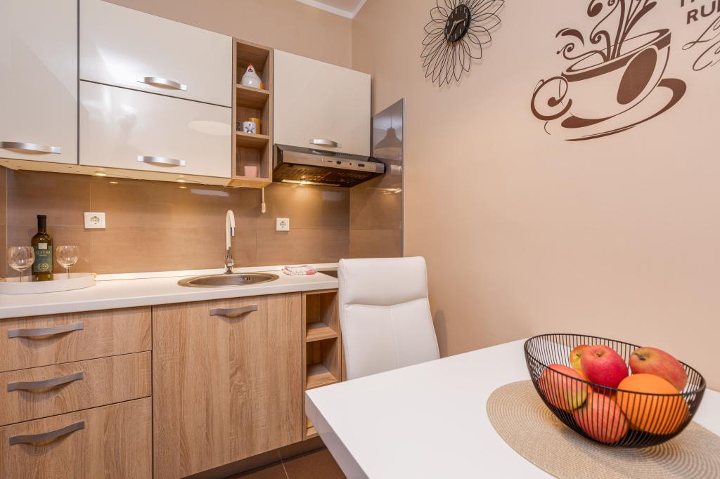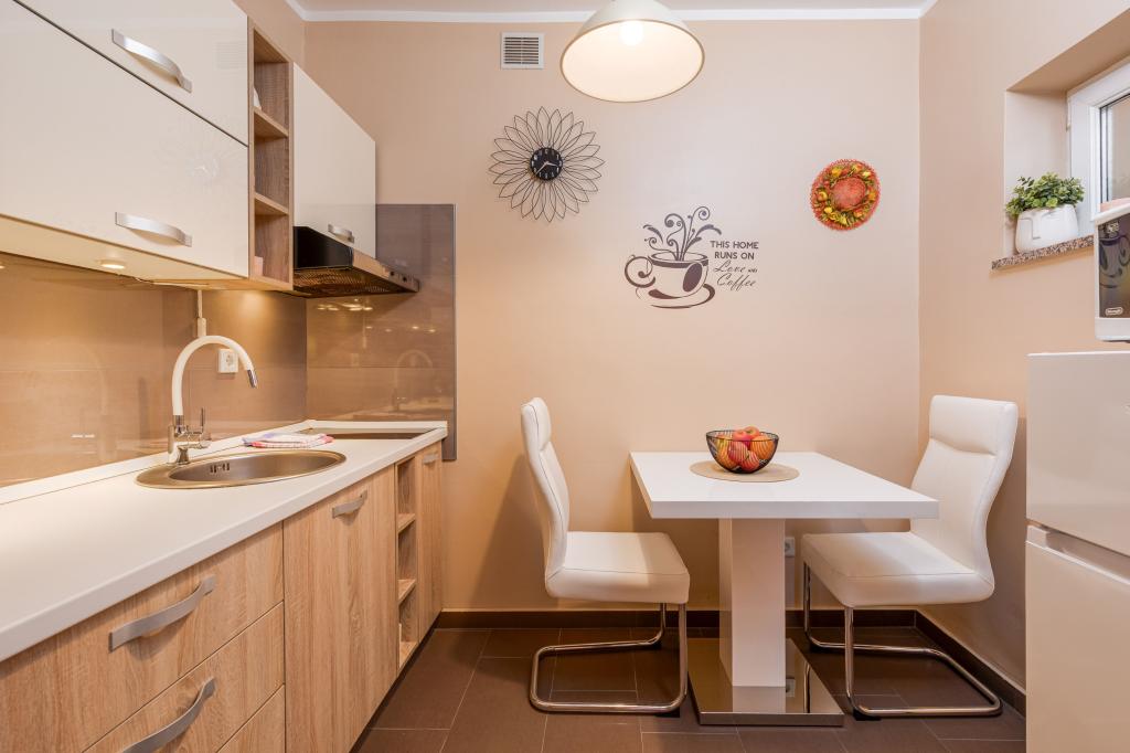 En savoir plus Unités d'hébergementLes demandes de renseignements et les réservations se font par courrier électronique. Pour les réservations d'hébergement, nous facturons un acompte de 15%, qui est inclus dans la facture finale. Le paiement s'effectue en espèces directement au propriétaire. Pour les séjours de deux semaines ou plus, nous accordons une réduction de 10%. Le prix comprend la location de l'appartement, l'utilisation de tous les appareils, la consommation d'électricité et d'eau, la télévision, le linge de lit (draps une fois par semaine, serviettes et torchons deux fois par semaine), ainsi que le nettoyage final, la taxe de séjour, l'utilisation d'Internet et de la climatisation. Dans les APP 1 et APP 3, un lit supplémentaire est facturé en supplément selon la liste de prix. Les APP 2 et APP 3 sont disponibles à la location toute l'année, en utilisant l'option chauffage pour un supplément de 10 eur/jour. L'heure d'arrivée est après 14 heures et l'heure de départ est jusqu'à 10 heures. Nous nettoyons les appartements conformément aux mesures épidémiologiques prescrites.