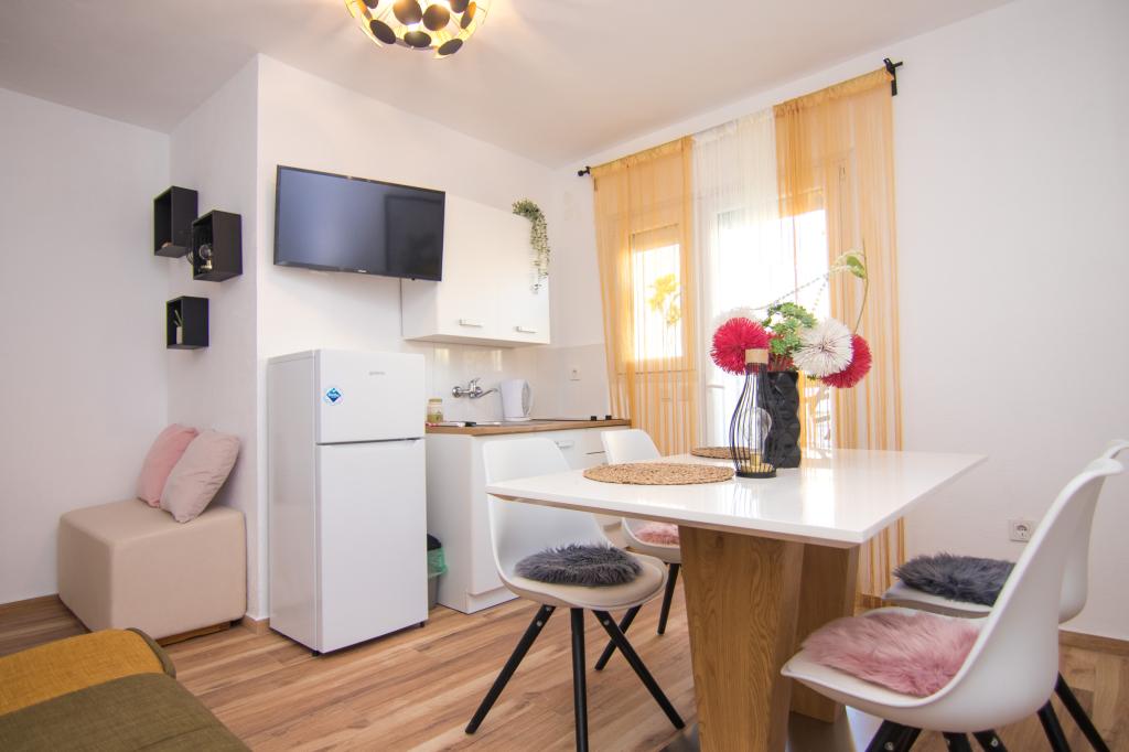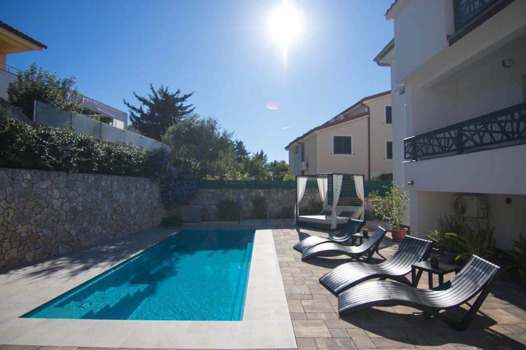 Cette magnifique propriété bénéficie d'un emplacement exceptionnel, à seulement 400 mètres de la plage et à environ 500 mètres de l'entrée de la vieille ville de Krka. C'est le choix idéal pour les voyageurs souhaitant profiter à la fois de la mer, de l'histoire et de l'ambiance urbaine. L'établissement propose une superbe piscine chauffée avec solarium, parfaite pour se détendre et profiter du soleil. Certains appartements offrent une vue imprenable sur la mer et de spacieuses terrasses, tandis que d'autres disposent d'un balcon ou sont situés juste à côté de la piscine, ce qui les rend parfaits pour les voyageurs souhaitant être au plus près des commodités. Tous les appartements sont équipés d'un parking privé, de la télévision par satellite, d'une connexion internet gratuite, d'une bouilloire électrique et d'une cafetière à filtre, garantissant ainsi un séjour confortable et pratique.