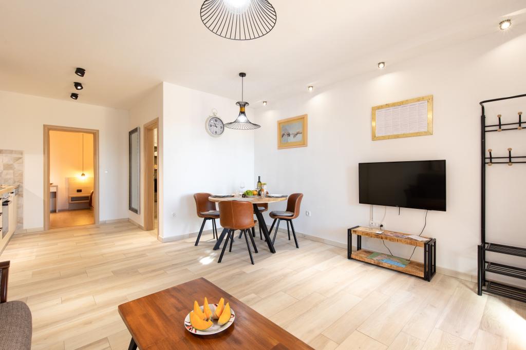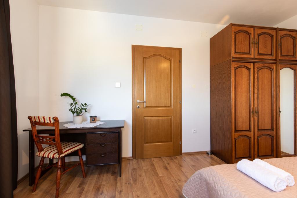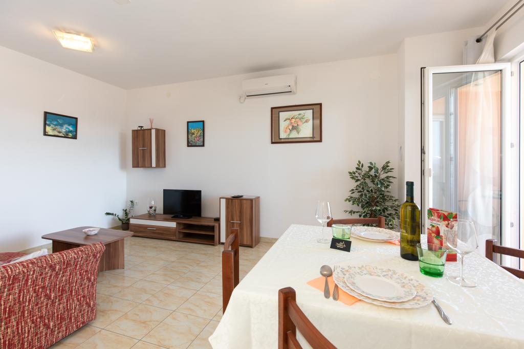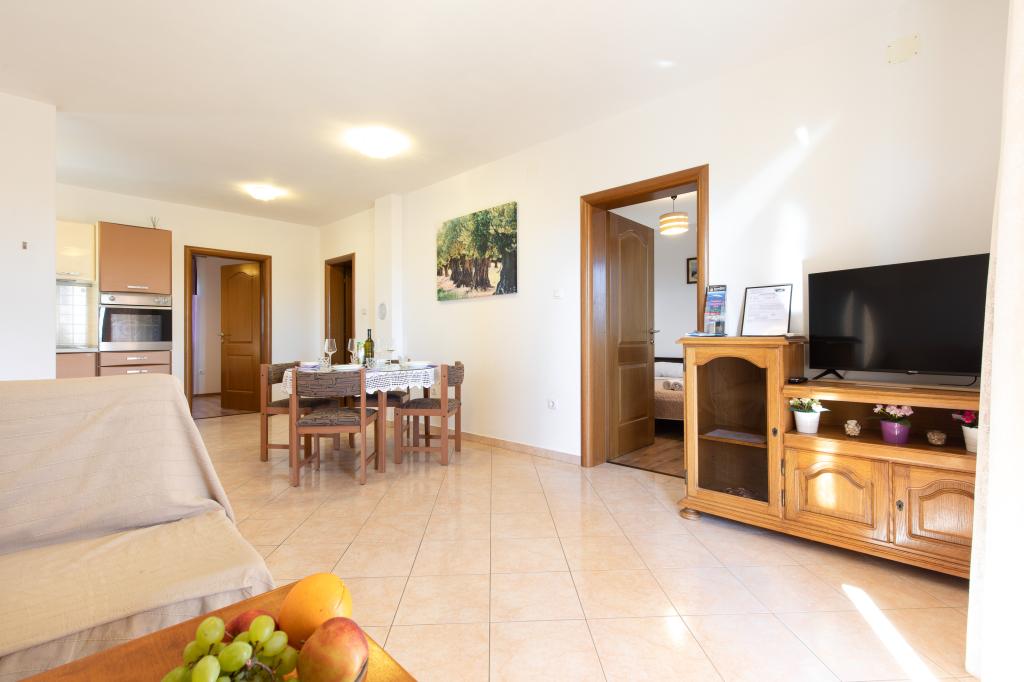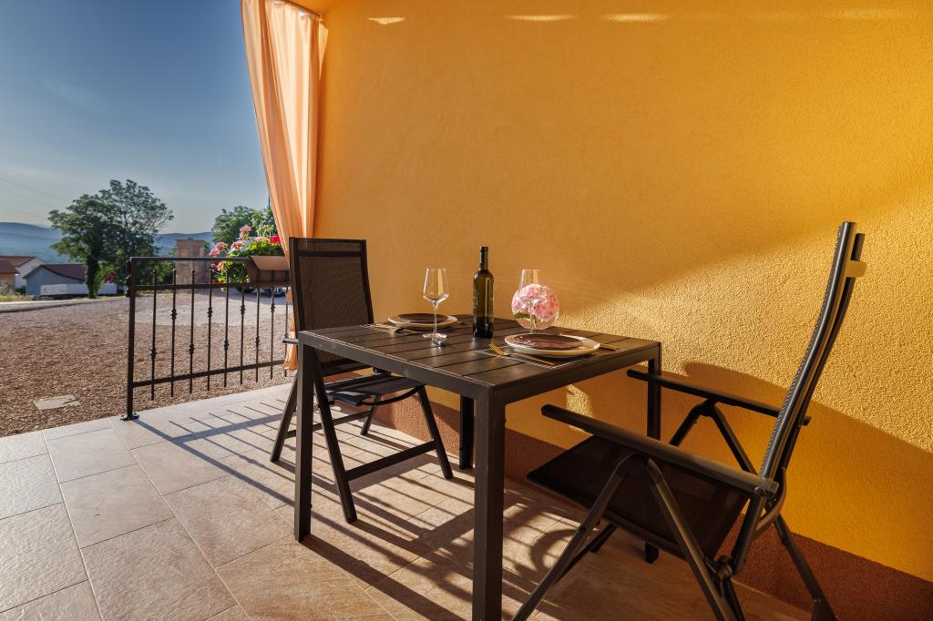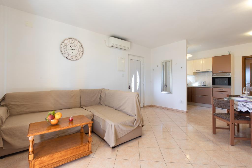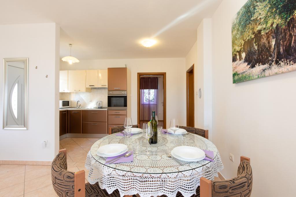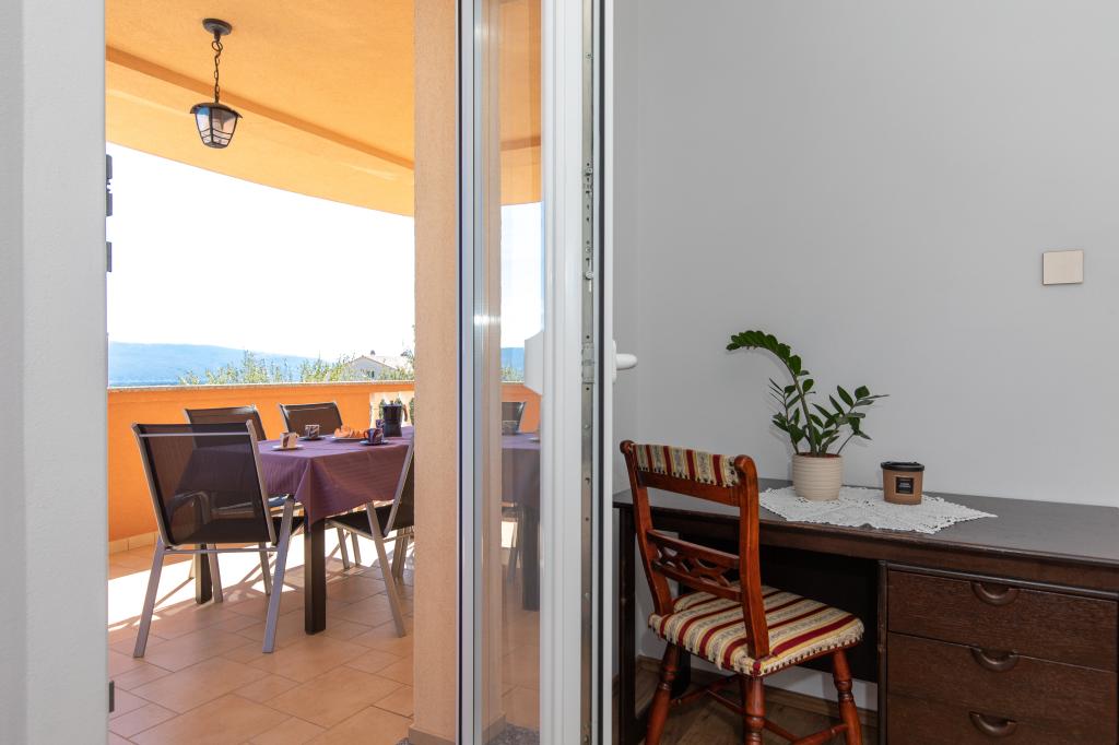 Un accueil très chaleureux, le propriétaire habite dans la même maison et ont toujours été là pour nous. L'appartement est complètement équipée neuve, air, TV, wifi gratuit, un beau balcon avec une vue de la ville de Krk et la mer, une grande chambre et une cuisine très spacieuse, parking privé, idéal pour les clients. La mer est à environ 3km, alors cet appartement est idéal pour les touristes à vélo. Hautement recommandé!