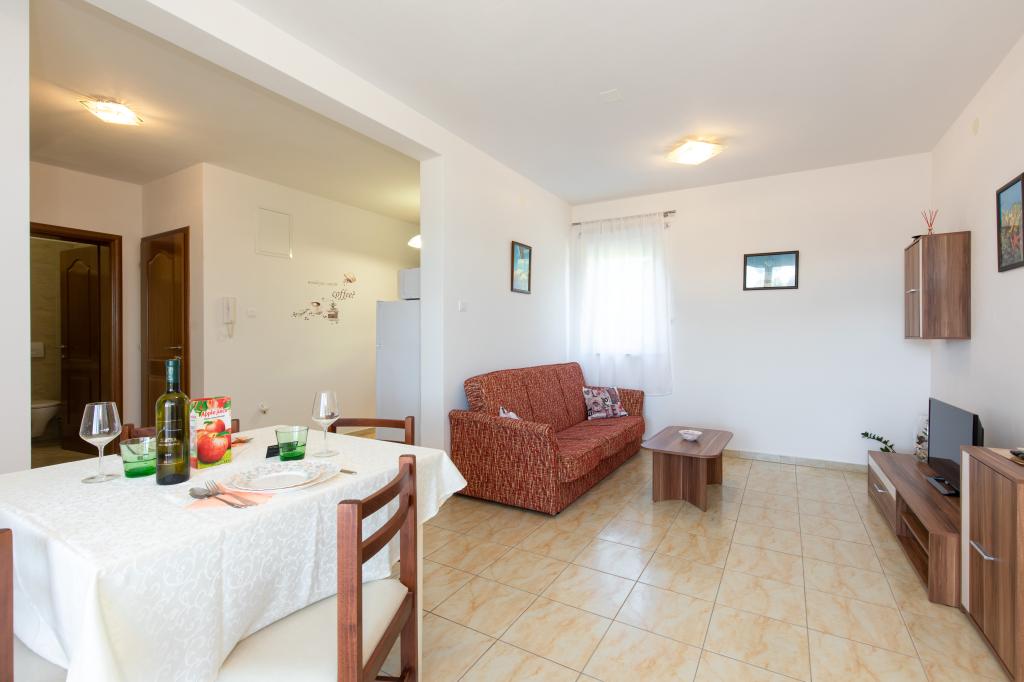 A 3 km de Krk, pratique pour ceux qui ont les moyens de se déplacer, l'appartement est neuf et équipé de tout le nécessaire pour un séjour de détente organisée. La cuisine a également une bouilloire et un micro-ondes, ainsi que réfrigérateur et cuisinière électrique. Existe-linge de lit, de bain et de cuisine, les détergents et les savons. Un parking privé avec utilisation d'eau pour le lavage de voiture. Barbecue. Tomislav et sa belle famille sont disponibles pour être entendu dans poli, sans être intrusif jamais! Recommandé pour 3 personnes ou 2 adultes et 2 petits enfants, parce que le canapé-lit double pas.