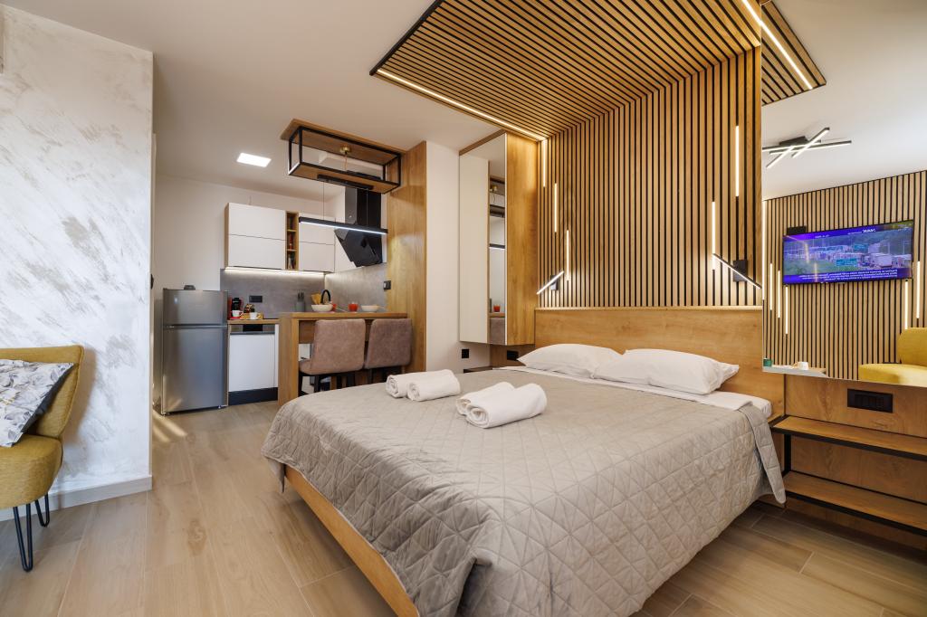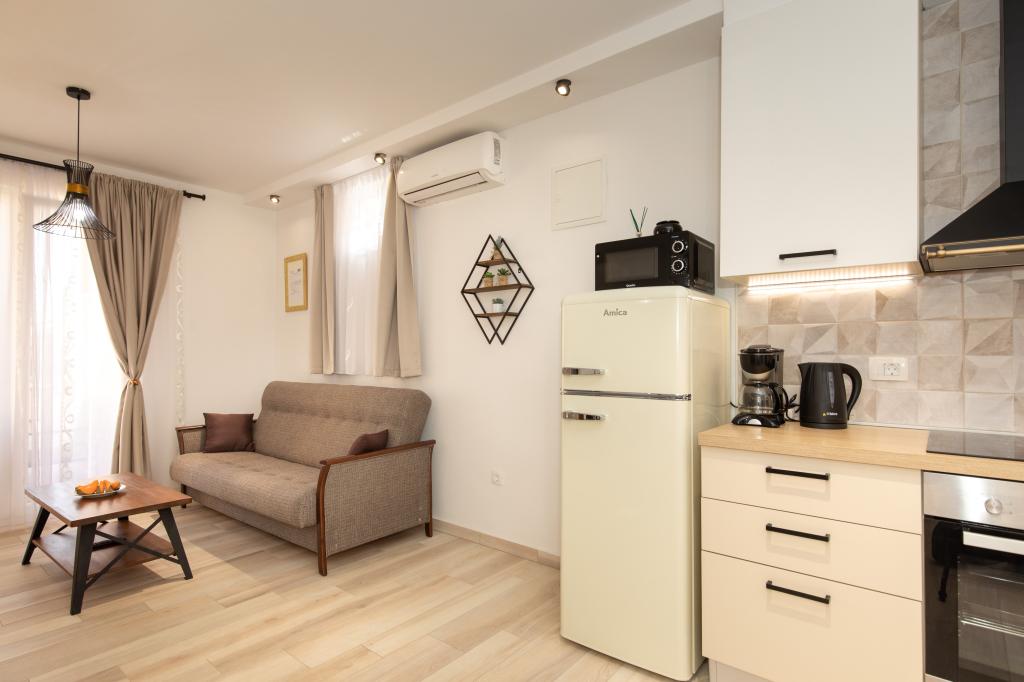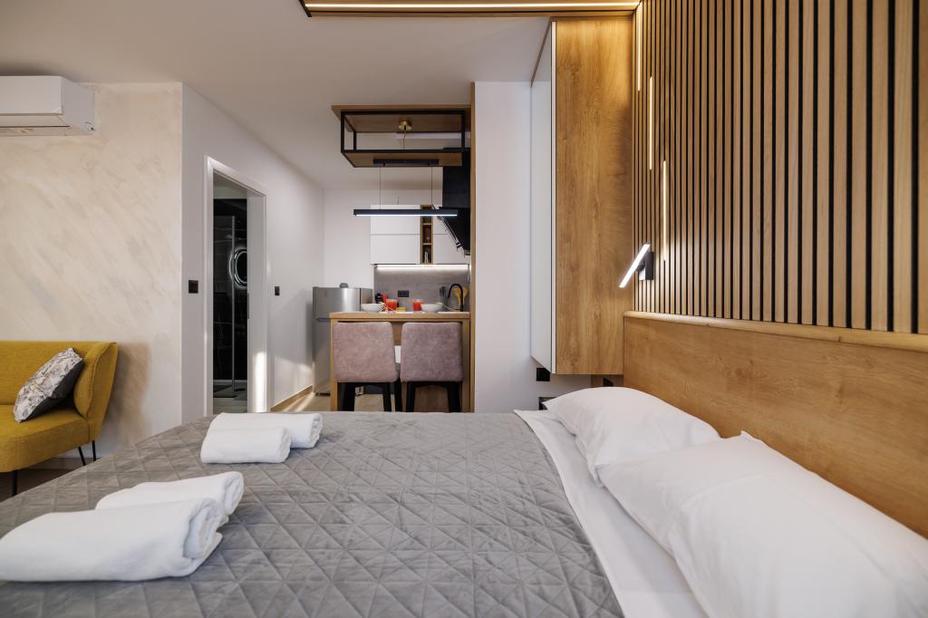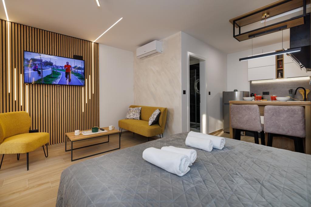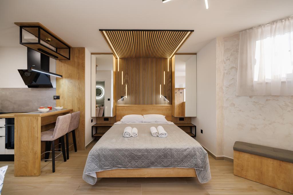 Nous avons tout aimé - un studio joliment décoré, une piscine propre et un solarium privé avec une entrée sur la mer, mais ce que nous avons le plus aimé, ce sont les hôtes qui étaient prêts à aider et à résoudre un problème inattendu. Notre satisfaction est mieux confirmée par le fait que lors de notre séjour nous avons immédiatement réservé le studio et à la nouvelle date.