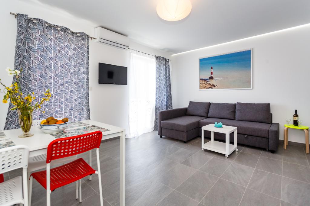 Salutation! :) Il s'agit de notre tout nouvel appartement situé près du centre de Krk (à environ 5 minutes à pied). L'appartement comprend une chambre avec un lit double, un salon avec un canapé convertible en lit double, une cuisine et une salle de bain avec les accessoires nécessaires. Il dispose également d'un balcon où vous pourrez profiter du soleil à tout moment de la journée. Nous proposons une place de parking gratuite à l'ombre, la climatisation gratuite, une télévision intelligente avec Netflix, un barbecue dans le jardin à côté de l'appartement et une connexion Wi-Fi gratuite.