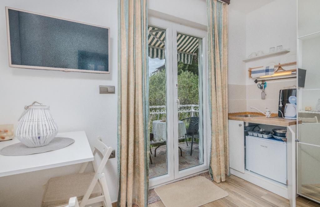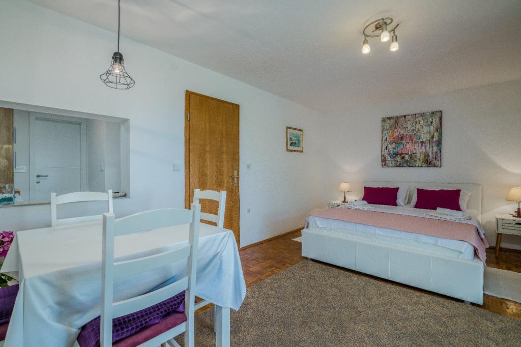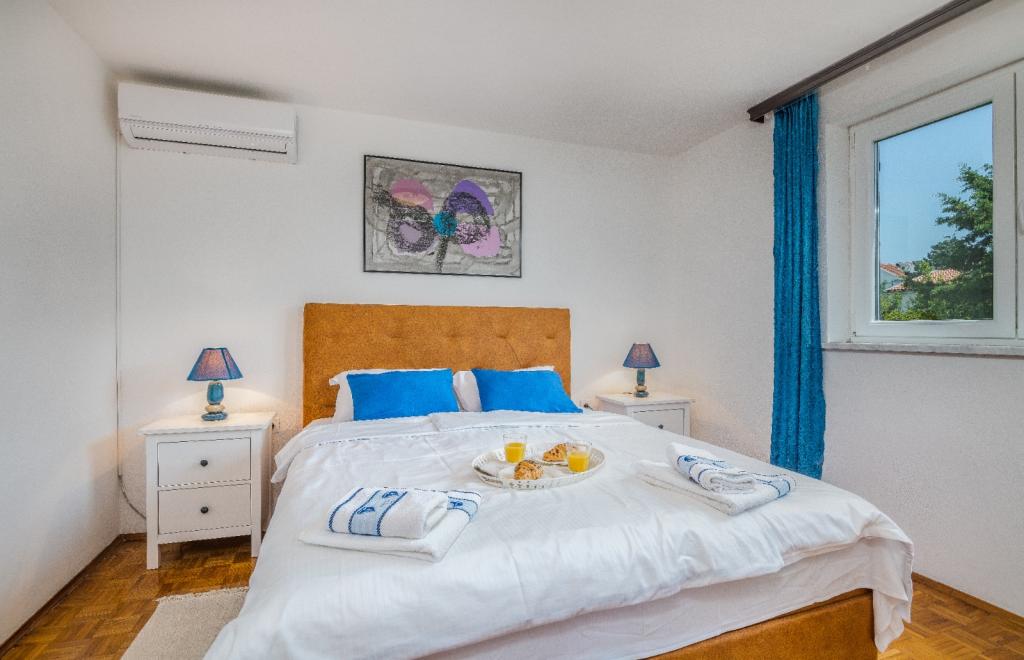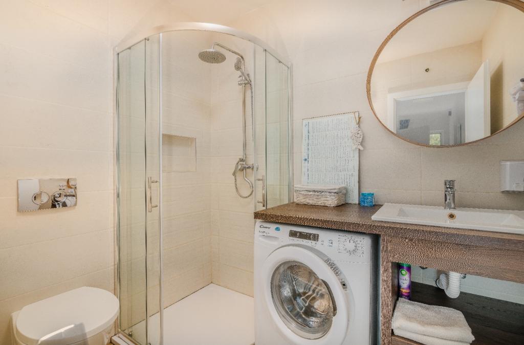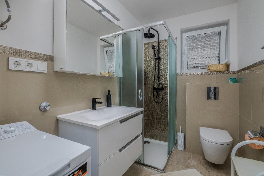 Les appartements Nada sont situés dans un endroit attrayant de la ville de Krk, à seulement 100 mètres de la mer et à 10 minutes à pied du centre-ville. Les appartements ont une vue sur la mer, sont entourés de verdure et d'une cour spacieuse. Nous louons 3 unités. Appartement 1, classé 4 étoiles, d'une superficie de 55 m2, composé de deux chambres séparées, chacune avec un balcon et une salle de bain avec WC et douche, lits 160x200, cuisine séparée avec séjour. Les appartements 2 et 3 sont de catégorie 3 étoiles, d'une superficie de 46 m2, disposent d'une chambre séparée avec un lit 160x200 et d'un salon plus grand avec un lit 160x200. Tous les appartements sont décorés de façon moderne et disposent d'un lave-linge, d'un lave-vaisselle, d'une télévision LED, d'un four, d'un micro-ondes, d'un grille-pain, d'une machine Nespresso... Toutes les pièces de l'appartement sont climatisées. Les plages populaires de Dražica et Punta Di Galetto sont situées à proximité de l'appartement. Les sites historiques se trouvent à 500 mètres de l'appartement, comme la forteresse de Krk. L'aéroport le plus proche est celui de Rijeka, à 25 km de l'établissement.