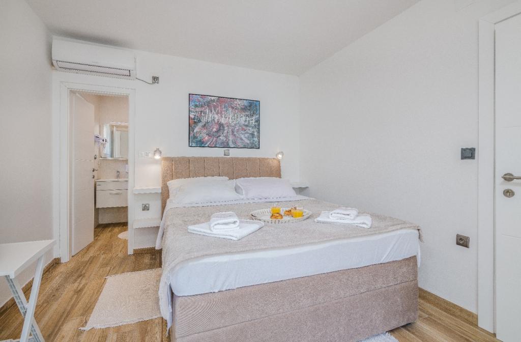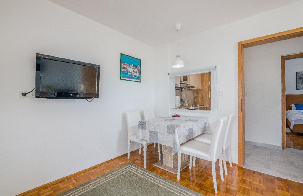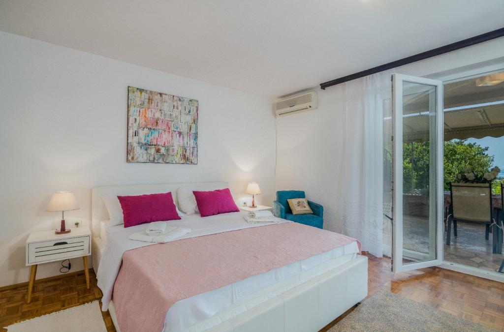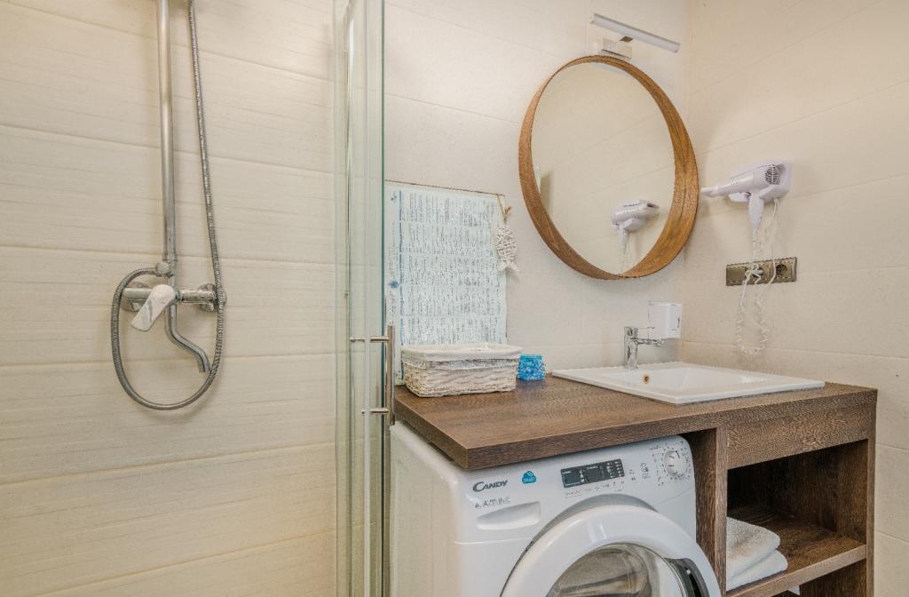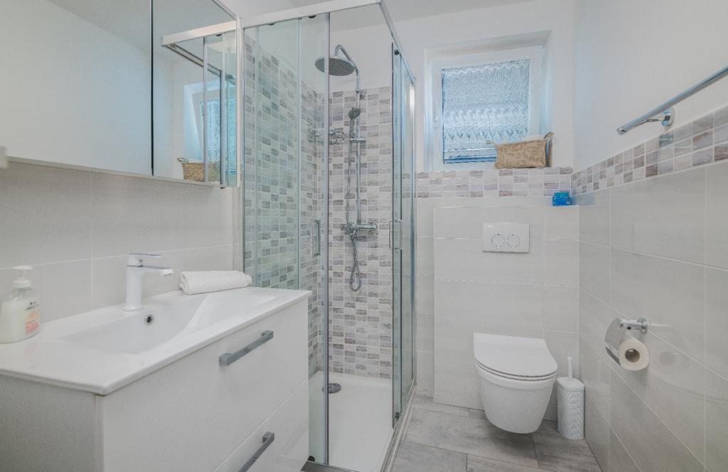 Les appartements Nada sont situés dans un endroit attrayant de la ville de Krk, à seulement 100 mètres de la mer et à 10 minutes à pied du centre-ville. Les appartements ont une vue sur la mer, sont entourés de verdure et d'une cour spacieuse. Nous louons 3 unités. Appartement 1, classé 4 étoiles, d'une superficie de 55 m2, composé de deux chambres séparées, chacune avec un balcon et une salle de bain avec WC et douche, lits 160x200, cuisine séparée avec séjour. Les appartements 2 et 3 sont de catégorie 3 étoiles, d'une superficie de 46 m2, disposent d'une chambre séparée avec un lit 160x200 et d'un salon plus grand avec un lit 160x200. Tous les appartements sont décorés de façon moderne et disposent d'un lave-linge, d'un lave-vaisselle, d'une télévision LED, d'un four, d'un micro-ondes, d'un grille-pain, d'une machine Nespresso... Toutes les pièces de l'appartement sont climatisées. Les plages populaires de Dražica et Punta Di Galetto sont situées à proximité de l'appartement. Les sites historiques se trouvent à 500 mètres de l'appartement, comme la forteresse de Krk. L'aéroport le plus proche est celui de Rijeka, à 25 km de l'établissement.