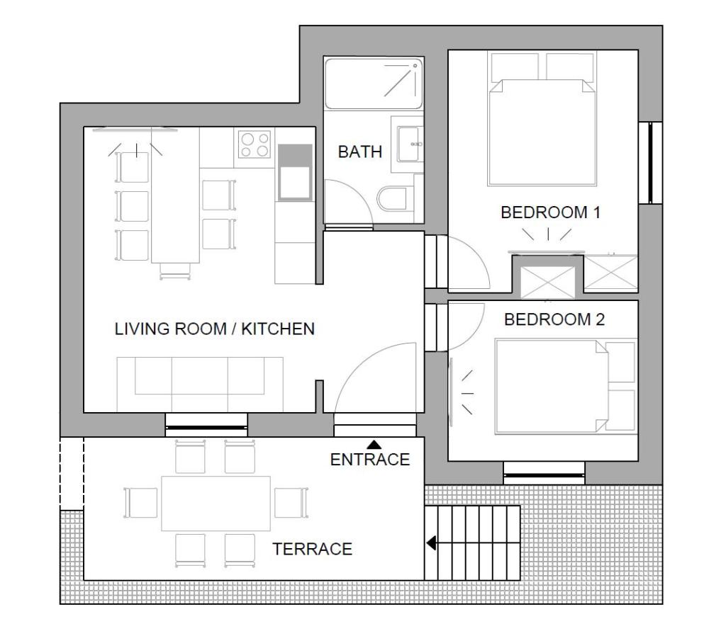 Appartement pour quatre personnes avec deux lits supplémentaires (42 m2)