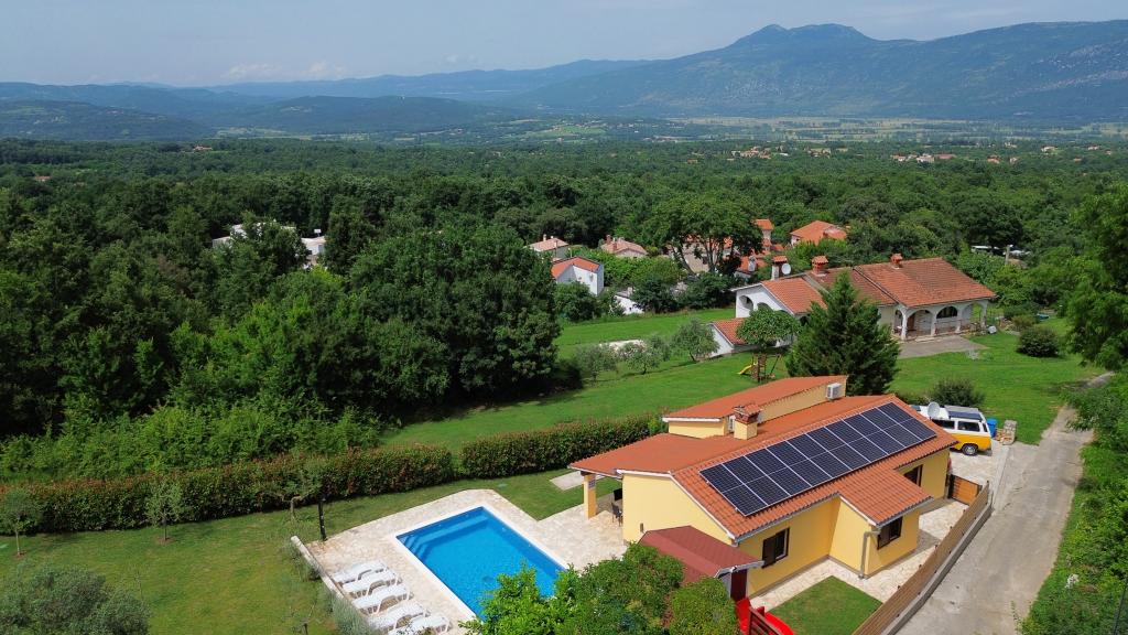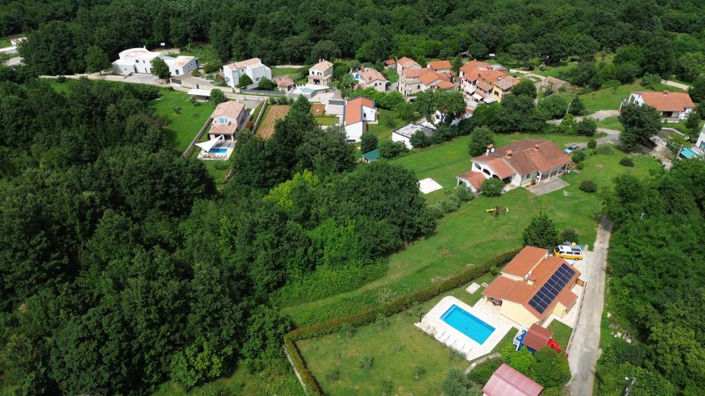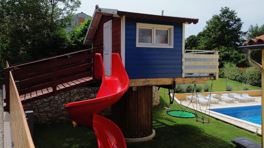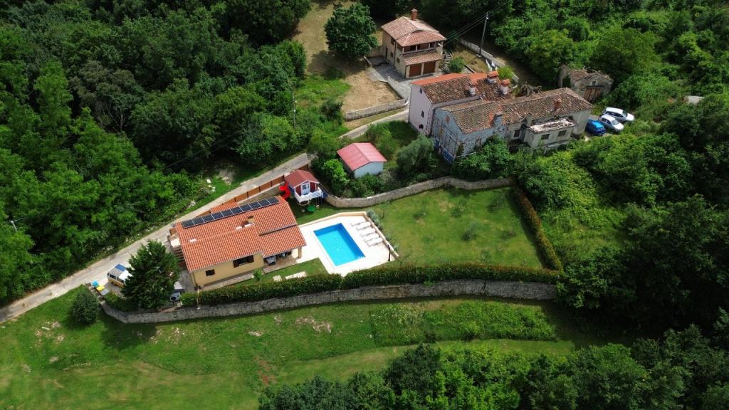 Bienvenue dans notre maison de vacances située dans le petit village paisible de Vlašići, près de Kršan, avec vue sur la nature et le mont Učka. C'est un havre de paix idéal pour des vacances en famille ou entre amis. Nous espérons que vous apprécierez le calme et la tranquillité pendant que vos enfants s'amuseront dans la cabane dans les arbres, les toboggans et les balançoires. La maison de 98 m² (entrée, séjour, cuisine, salle de bain, une chambre avec un lit double de 160 x 200 et une chambre avec un lit double de 160 x 200 et un futon de 160 x 200) est située sur un grand jardin clôturé de 870 m² avec parking sur le terrain. La maison est équipée d'une piscine extérieure chauffée de 7 x 4 m et d'une profondeur de 140 cm. L'eau de la piscine est chauffée à 25 °C maximum pendant la période où elle doit être chauffée. La première grande ville à proximité du village est Kršan, qui possède un riche patrimoine culturel et historique. Également à proximité (15 minutes), se trouve Labin, perchée sur une colline dominant Rabac. Labin est une destination idéale pour les amateurs de tourisme culturel et d'antiquités, réputée pour ses nombreuses galeries, expositions et événements en plein air. Rabac (25 minutes) possède de magnifiques plages, considérées comme les seules plus belles d'Istrie, avec une mer cristalline. Les villes de la péninsule istrienne méritent également une visite : Pula, Rovinj, Umag et Poreč sont toutes à environ 1 - 1 h 30. Les îles de Cres et Lošinj, le parc national de Brioni près de Pula et Rijeka, troisième plus grande ville de Croatie, sont à 1 heure du village. Sur la route vers Rijeka, par la mer, d'où l'on jouit d'une vue magnifique sur la baie de Kvarner et les îles, ne manquez pas Opatija, destination touristique de longue date en Croatie. L'observatoire de Višnjan, situé au cœur de la petite ville istrienne de Višnjan, mérite également une visite.