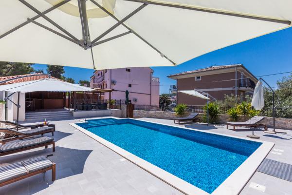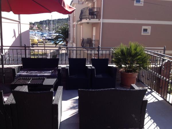 Taxe de sejour est inclus dans le prix.Excellents appartements. Très propre. La dame s'est occupée des serviettes et du linge de lit propres (changés après quelques jours). Emplacement parfait, plusieurs plages différentes en 2 à 5 minutes. Belle vue sur le port de plaisance. La piscine est propre et bien entretenue, éclairée la nuit. Recommander!
