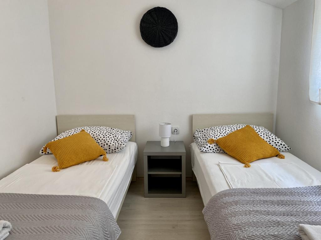 Appartements entièrement rénovés entièrement équipés, 3ème rang de la mer (100 m de la plage) et promenades en bord de mer. Tous les appartements sont entièrement équipés, climatisés, disposent d'une terrasse avec vue sur la mer, le parking est sécurisé et libre derrière ou devant la maison, le wifi est gratuit. La maison est située à 3km du centre de Novalja. A proximité se trouve un restaurant et un magasin. Idéal pour tous les groupes d'âge, des couples avec enfants aux jeunes qui recherchent du plaisir.