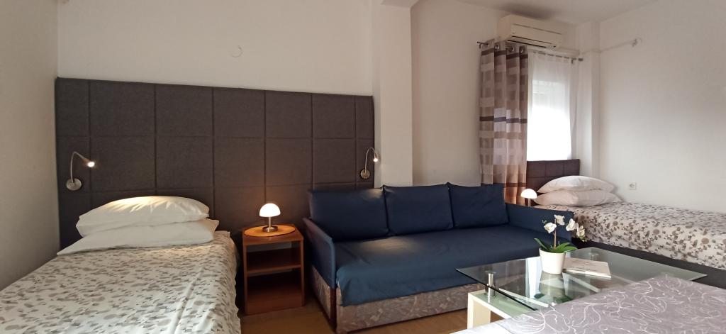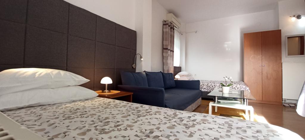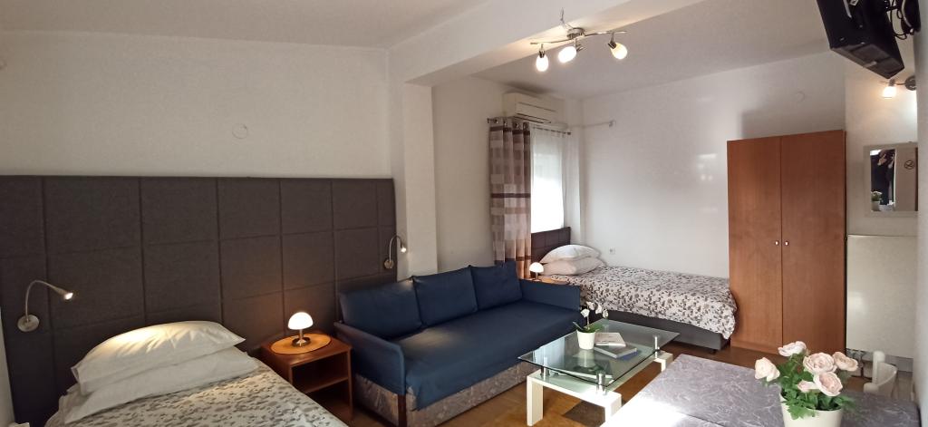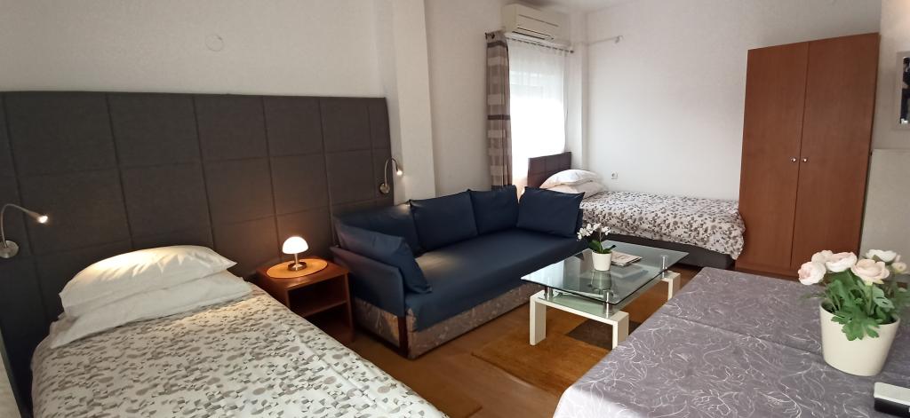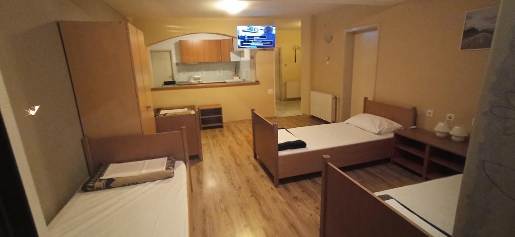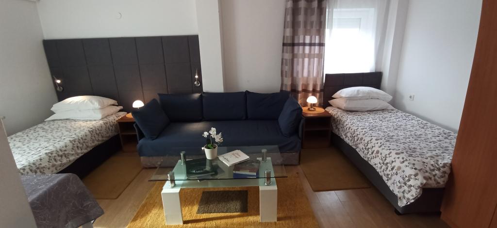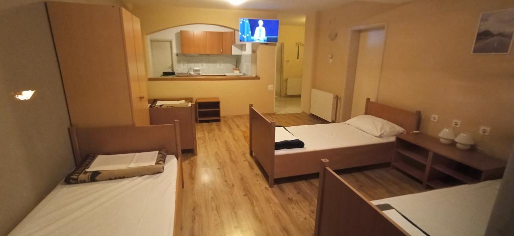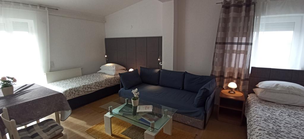 La maison familiale est située à côté du parc historique et du complexe de piscines extérieures Lipik. Nous avons un total de 5 studios. Deux studios pour un total de sept personnes peuvent accueillir votre famille dans un quartier calme de Lipik. Nous sommes également à proximité du Lipik Spa et proposons souvent un hébergement aux patients et aux accompagnants de la famille. Les studios sont au premier étage et la cour paysagée est à la disposition de vos petits pour jouer et s'amuser. Les studios sont équipés de la climatisation, du chauffage central et la terrasse offre une vue sur les piscines et le parc. L'Internet optique plat est gratuit et gratuit.