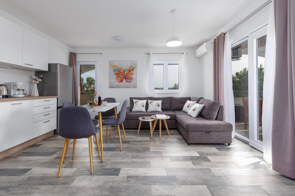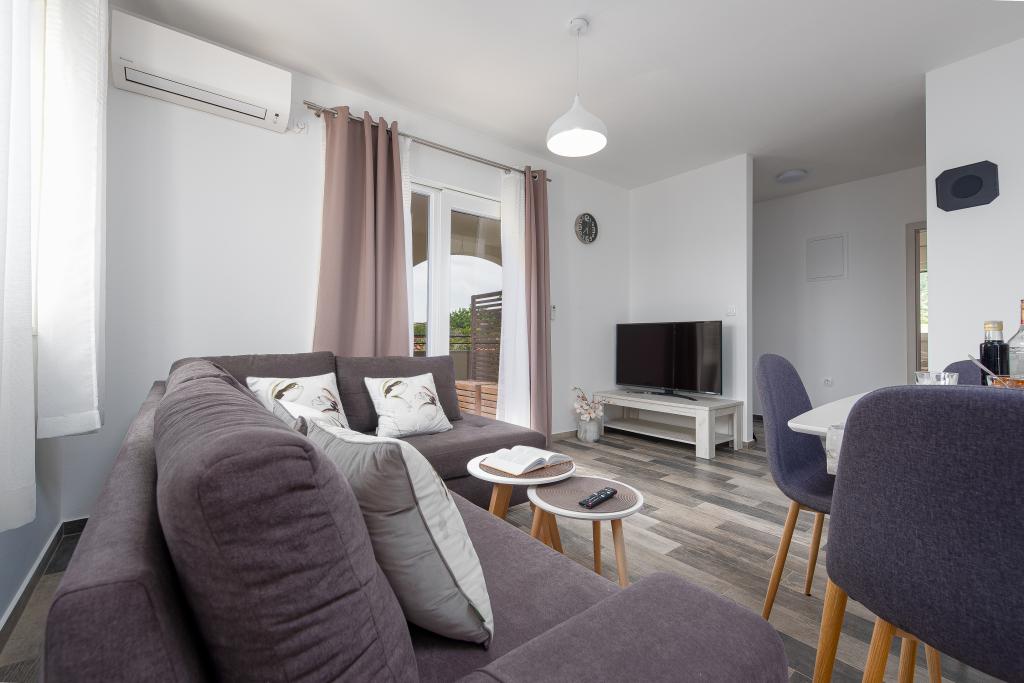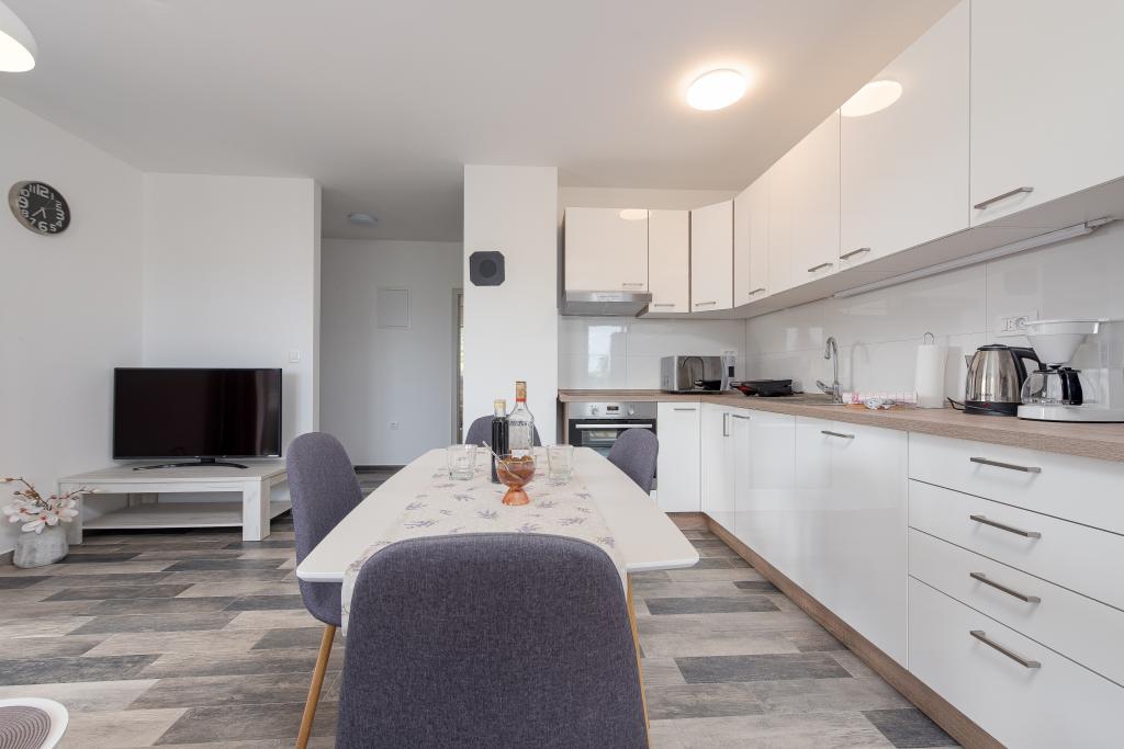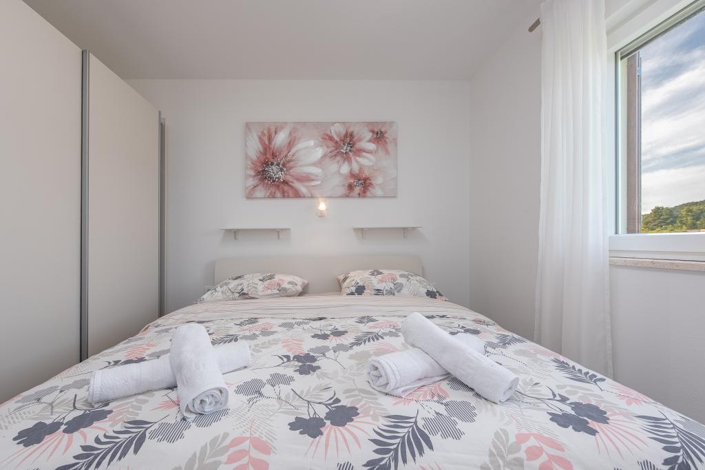 Les appartements sont situés dans la paisible ville de Ljubač, à 16 km de Zadar. Ils sont à 150m de la première plage. D'autres plages sont également à proximité. L'appartement est 2+2, c'est-à-dire 4 personnes - une chambre avec un lit double plus un lit d'appoint - un canapé-lit. Si nécessaire, un lit bébé est également disponible. La superficie de l'appartement est de 46m2 plus une grande terrasse. Les appartements sont entièrement équipés : climatisation, TV SAT, WIFI, lave-vaisselle, lave-linge, grille-pain, cafetière, micro-ondes, etc. Protection contre les moustiques à toutes les fenêtres. En face il y a une piscine 8x4m avec une profondeur de 1,5m. Place de parking disponible. Taxe de séjour incluse dans le prix !