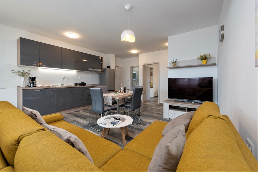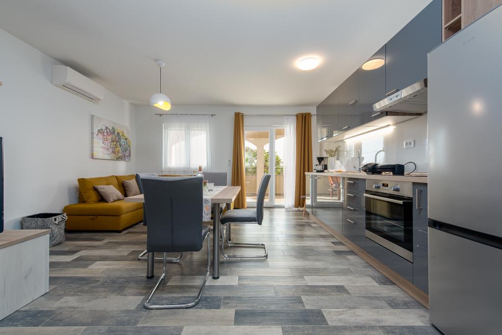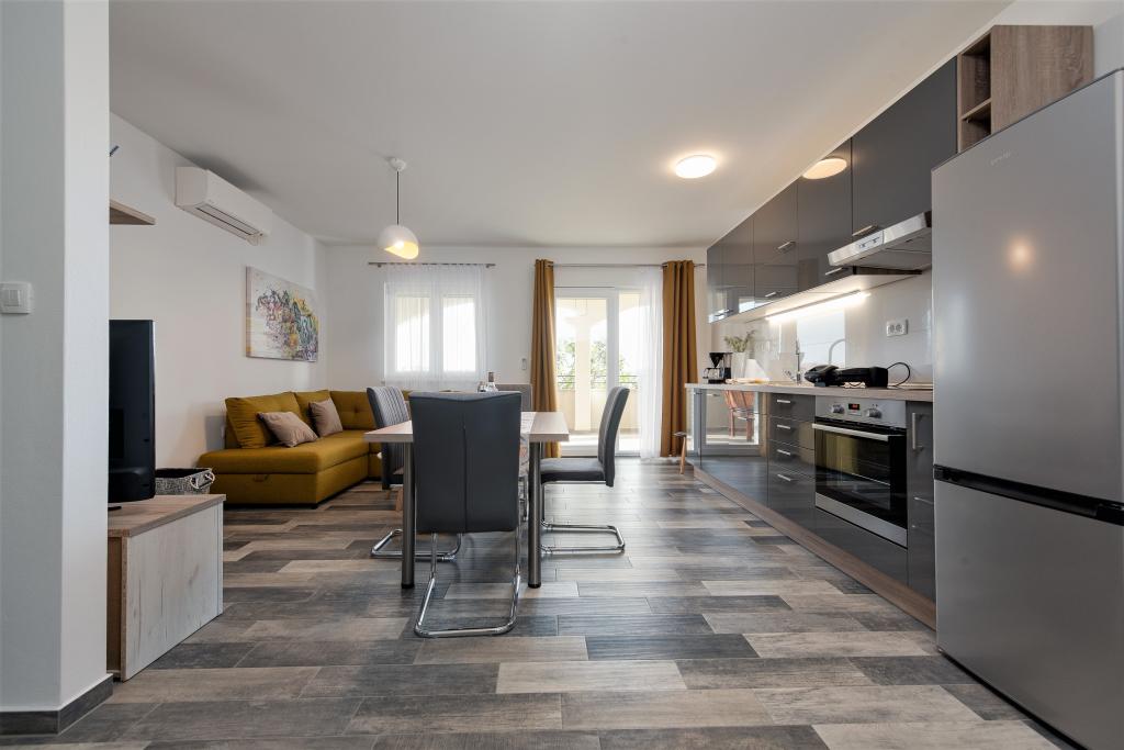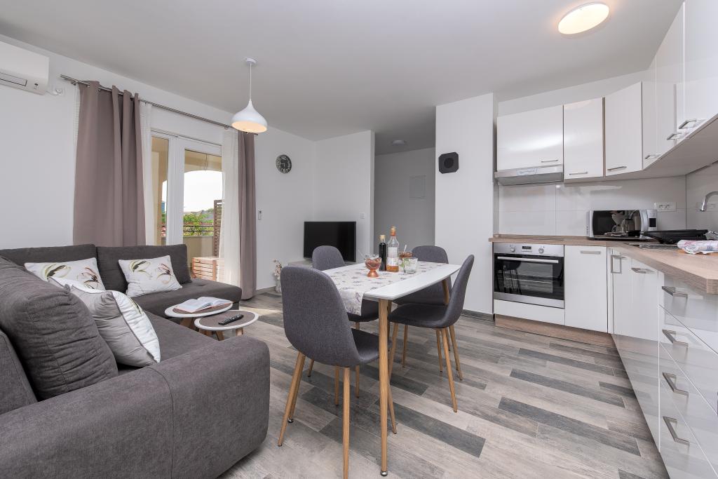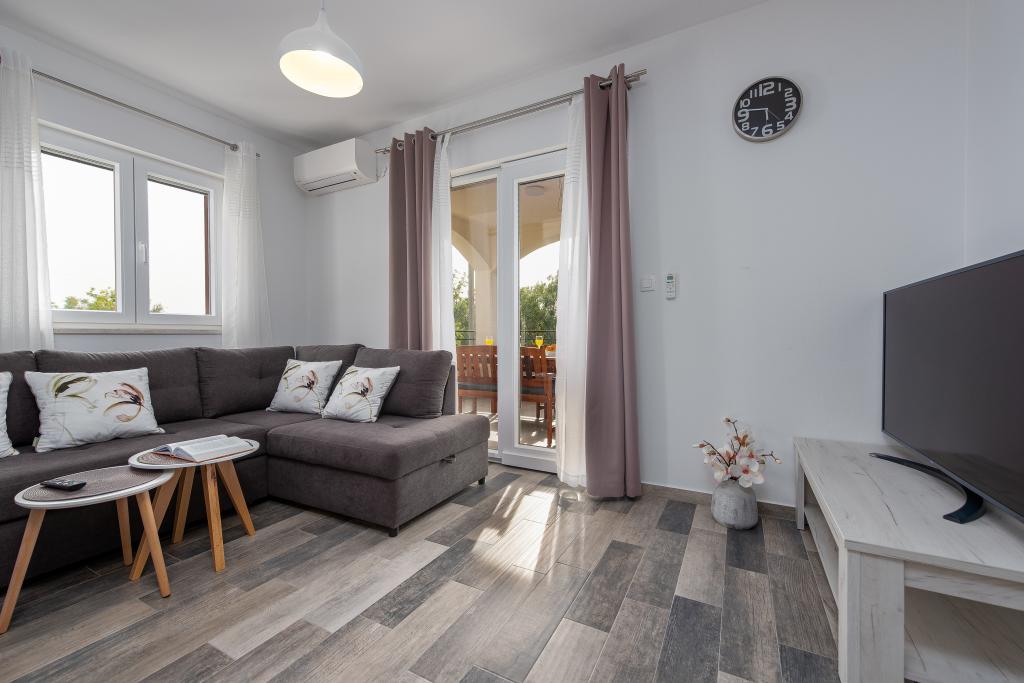 Les appartements sont situés dans la paisible ville de Ljubač, à 16 km de Zadar. Ils sont à 150m de la première plage. D'autres plages sont également à proximité. L'appartement est 2+2, c'est-à-dire 4 personnes - une chambre avec un lit double plus un lit d'appoint - un canapé-lit. Si nécessaire, un lit bébé est également disponible. La superficie de l'appartement est de 46m2 plus une grande terrasse. Les appartements sont entièrement équipés : climatisation, TV SAT, WIFI, lave-vaisselle, lave-linge, grille-pain, cafetière, micro-ondes, etc. Protection contre les moustiques à toutes les fenêtres. En face il y a une piscine 8x4m avec une profondeur de 1,5m. Place de parking disponible. Taxe de séjour incluse dans le prix !