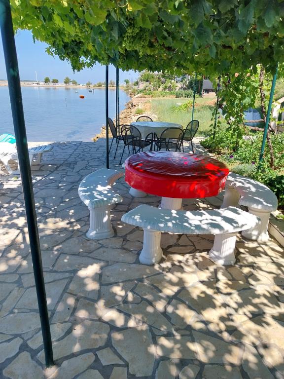 Appartements Mirko sont situés dans Ljubač -Zadar La Dalmatie du Nord. Les appartements sont situés dans le front de mer endroit idéal pour se détendre sur la terrasse à l'ombre des vignes. La plage est de sable, idéal pour les enfants. 17 km de la ville de Zadar Ljubco situés unique au monde par l'organe de la mer. Environ 25 km se trouve le parc national, et environ 35 km des lacs de Plitvice.