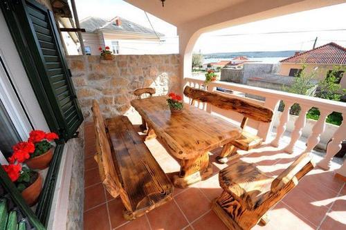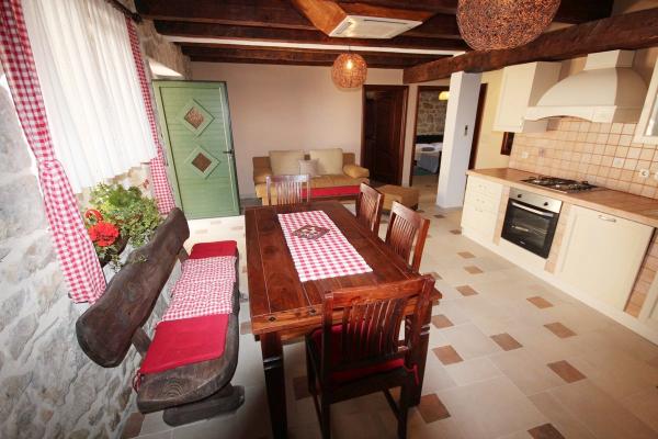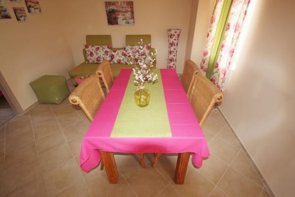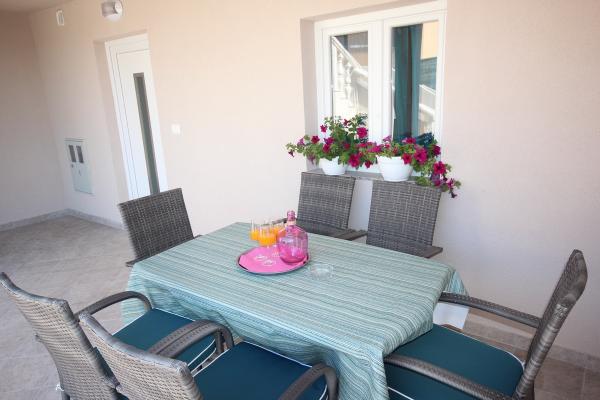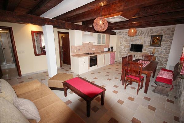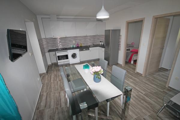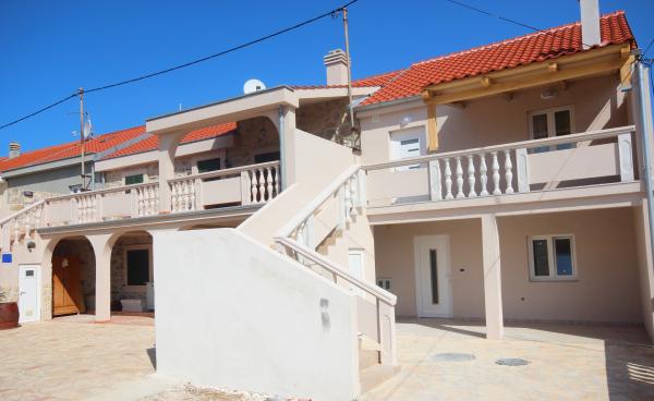Appartements récemment rénovés avec climatisation et internet, dans une maison dalmate en pierre, à proximité de la plage de sable. Rez-de-chaussée – A1, superficie 80 m², 3 chambres avec lits doubles, grand séjour avec cuisine et coin repas, canapé-lit pour 2 personnes, 2 salles de bains (twc), terrasse couverte 30 m². 1er étage – A2, superficie 80 m², 3 chambres avec lits doubles, grand séjour avec cuisine et coin repas, canapé-lit pour 2 personnes, 2 salles de bains (twc), terrasse couverte 30 m² avec vue partielle sur la mer. Dans la nouvelle partie de la maison, pour la saison 2017, nous vous proposons plus d'appartements : Rez-de-chaussée B1 / étage B2, superficie 54qm, 2 chambres avec lits doubles, séjour avec cuisine et coin repas, canapé-lit pour 2 personnes, 2 salles de bains, terrasse. Equipement : TV satellite, climatisation, internet, lave-linge, cuisine avec cuisinière, four, grand réfrigérateur avec congélateur, lave-vaisselle, micro-ondes, cafetière. Les clients disposent d'un parking sécurisé devant la maison et d'un barbecue à utiliser.