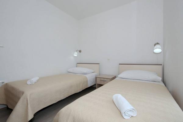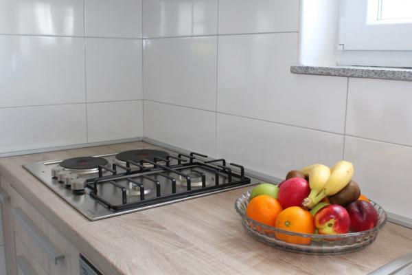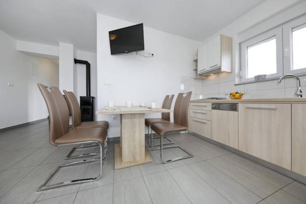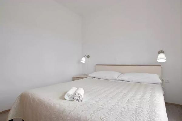 Appartements neufs, propres et très bien équipés. Des hôtes très sympas et accueillants. Un endroit idéal pour ceux qui recherchent la paix. La maison est située en marge, ce qui permet de profiter du silence incroyable. En ligne droite, la baie est à 50-60 mètres. La descente vers l'eau est longue et douce, ce qui permet aux enfants de jouer en toute sécurité, même à 50 mètres du rivage. Il y a beaucoup d'attractions dans la région, donc si vous voulez passer des vacances actives et plus tard un verre de vin en soirée sur la terrasse avec vue sur le coucher de soleil, je vous le recommande vivement. Si nécessaire, les hôtes sont heureux de vous aider à réserver diverses attractions. PS: Il y a de délicieuses figues dans le jardin mais je ne sais pas si je devrais écrire à ce sujet sur le forum. Pour ceux qui visiteront cet endroit après une haute saison sera probablement aussi des raisins