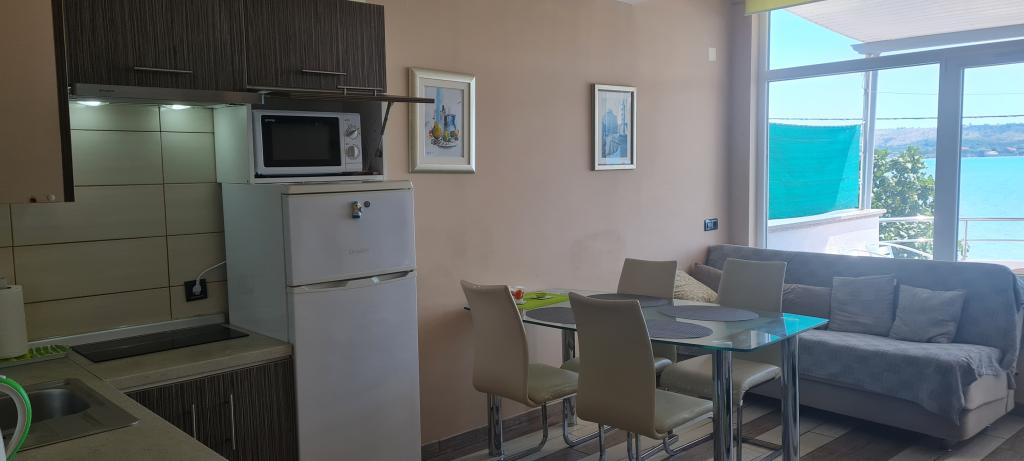 Bel appartement dans lequel ils sont le nettoyage, les serviettes tout comme un hôtel. La cuisine entièrement équipée, deux chambres, une avec un lit double et l'autre un lit double et un simple, avec deux chambres à coucher est un balcon donnant sur la mer. De plus, la cuisine est un canapé confortable avec accès au deuxième balcon, les hôtes très agréable. Nous étions là-bas 10 jours et nous sommes très heureux. Sincèrement. Drabik
