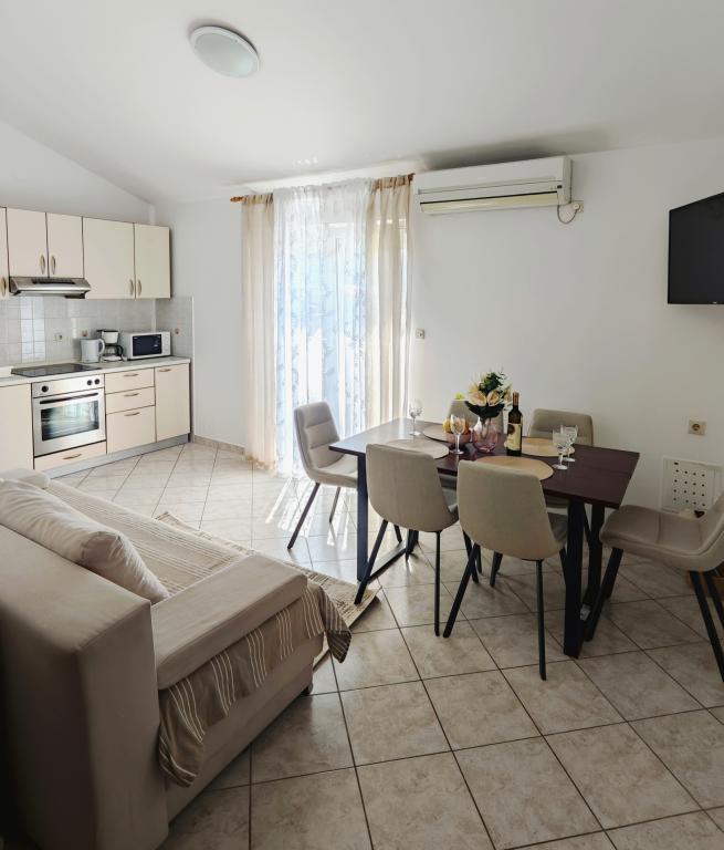 Multiple nous sommes invités retournons. Chère famille, des appartements équipés accueillants, propres. La plage est de sable fin et les deux sont à proximité, la belle ville de Rab. Pour les familles avec de petits enfants les parents le recommande chaudement.