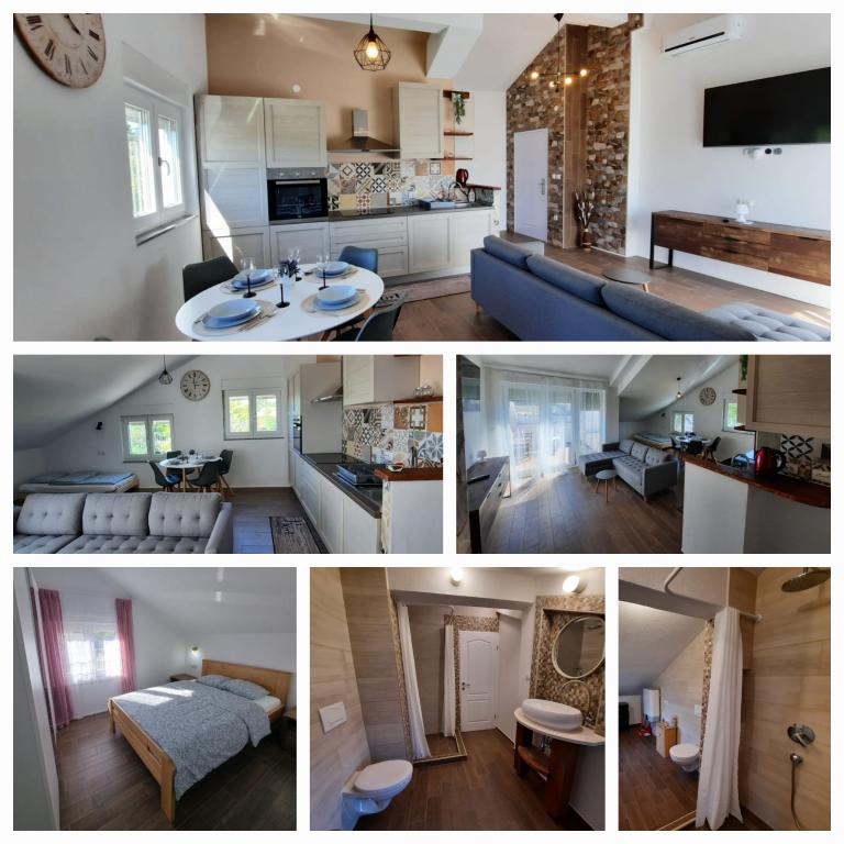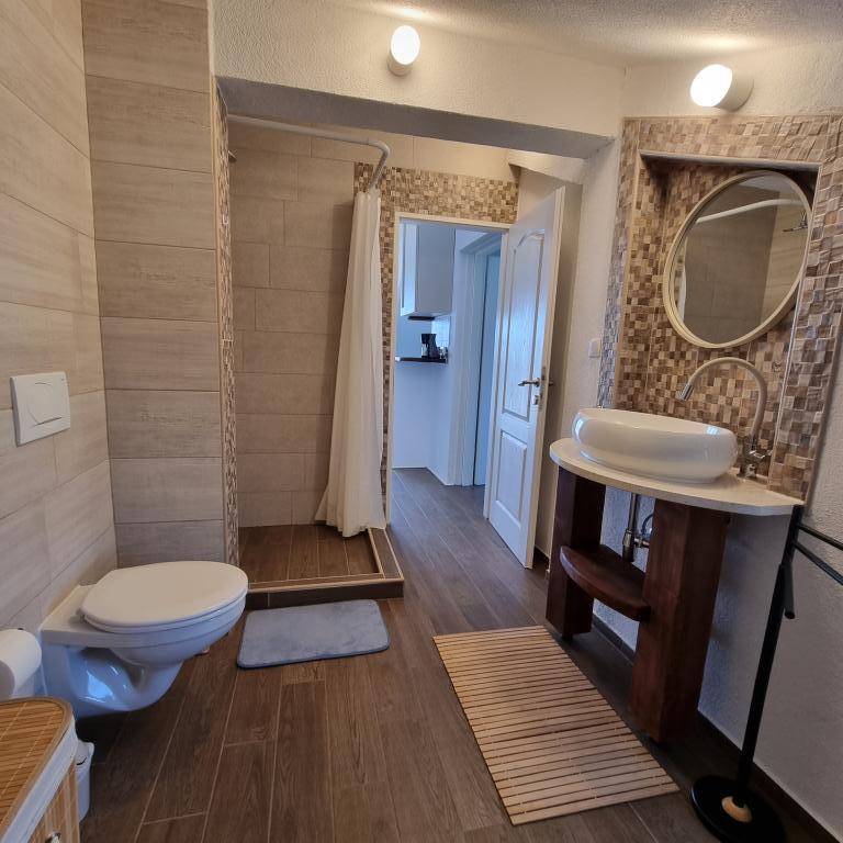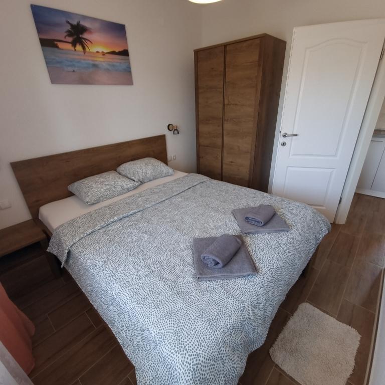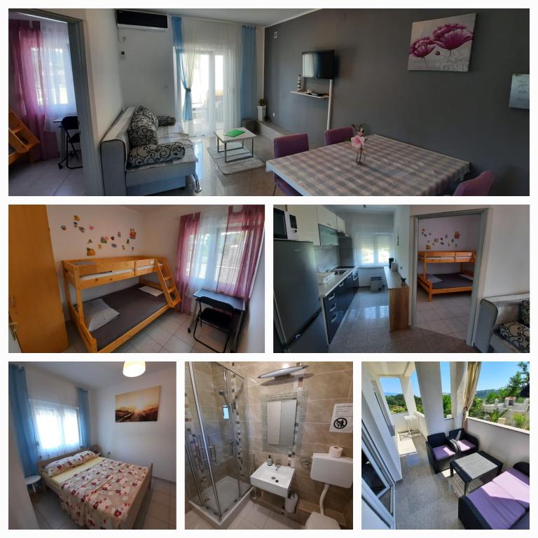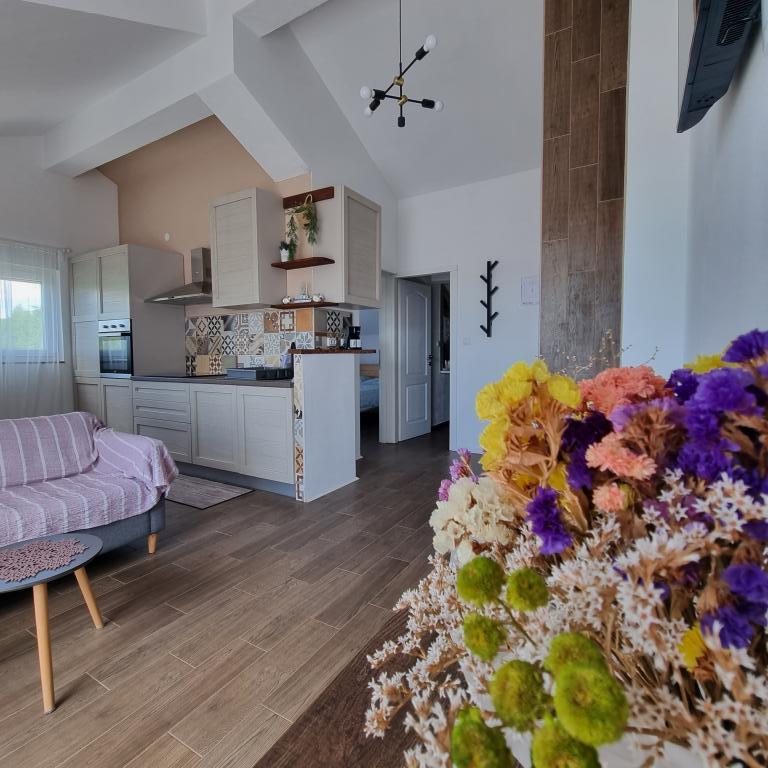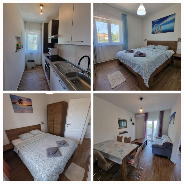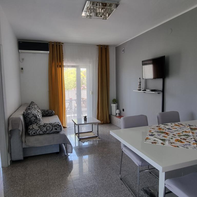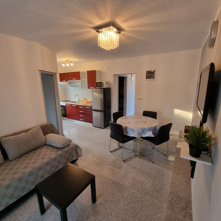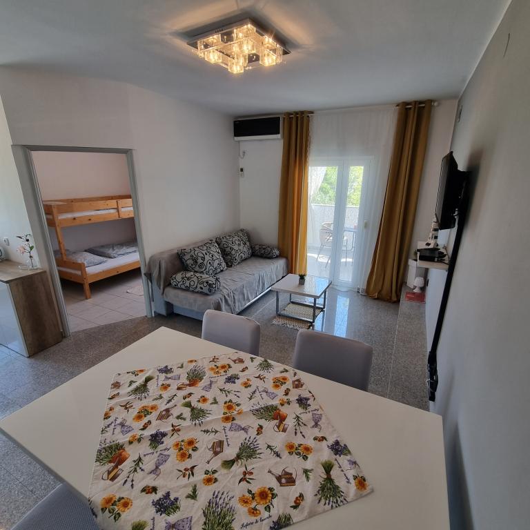 Taxe de sejour est inclus dans le prix.Nos appartements offrent un hébergement confortable avec cuisine équipée, climatisation, télévision et Wi-Fi gratuit. Les clients peuvent profiter d'un grand jardin, d'un barbecue pour préparer des repas en plein air et d'un plus grand parking disponible. Les animaux ne sont pas admis. Possibilité d'utiliser un lit bébé. Blanchisserie - frais supplémentaires.