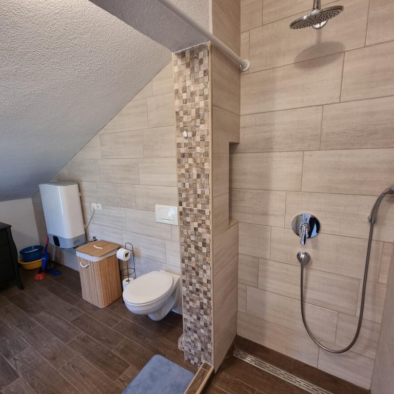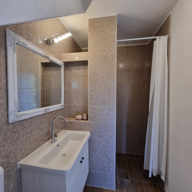 Chers clients, bienvenue aux appartements Zekić, situés dans un endroit calme, à proximité du géoparc de Rab - qui offre d'excellentes opportunités pour explorer la beauté naturelle de l'île ! Notre emplacement vous permet un accès rapide aux plages naturelles, sablonneuses et isolées telles que Ciganka, Sturić, Dubac, Podšilo. Les plages sont accessibles à pied facilement (15-20 minutes) à travers la forêt de pins du Géoparc. Il y a également des parkings. Il se trouve à environ 5 minutes en voiture de la plage de Rajska, des magasins, des pharmacies et des boulangeries. Profitez de vos vacances, de la nature et d'un hébergement confortable ! Nous attendons votre arrivée avec impatience !