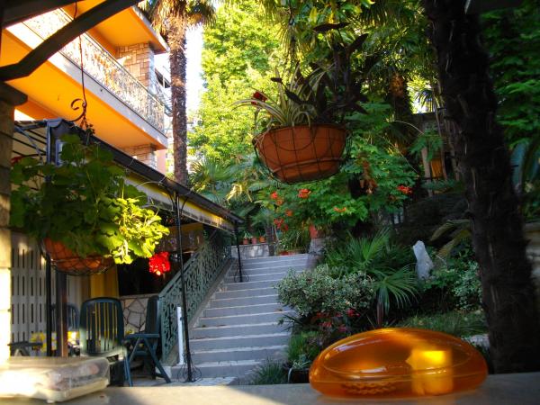 L'appartement se situe au rez-de-chaussée d'une maison individuelle. Son atout principal est son grand jardin arboré et fleuri. On y trouve une pergola couverte avec barbecue, une cuisine entièrement équipée et une grande table de jardin. Le jardin, attenant à l'appartement, forme un ensemble harmonieux où les hôtes peuvent profiter d'une agréable fraîcheur, du calme et de la verdure. Un véritable havre de paix à proximité de la plage et du centre-ville, avec toutes les commodités. Télévision par satellite, climatisation, Wi-Fi 24h/24. Parking dans la cour.