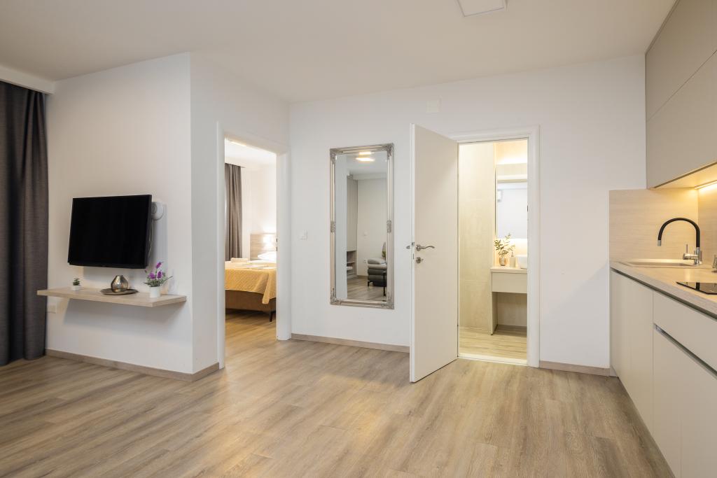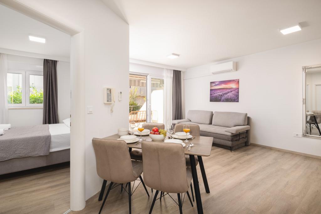 Bienvenue à l'appartement Adria Mare, situé à Makarska à seulement 50 mètres de la plage principale de la ville et à 400 mètres du centre, cet appartement moderne et confortable offre deux chambres et une terrasse spacieuse pour un plaisir complet. Profitez de la proximité des principales attractions, restaurants et bars. Une place de parking est à disposition des hôtes.