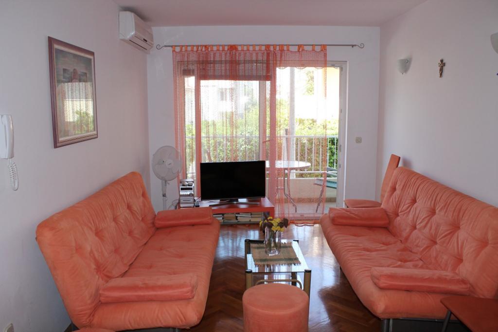 Je loue un appartement de quatre lits (2 plus 2) à Makarska au premier étage de l'immeuble de la rue Kralja Petra Krešimira IV 66. L'appartement a 44 m2 et se compose de: cuisine, salle à manger, salon, chambre et salle de bain. Le salon et la chambre ont accès à des balcons séparés. L'appartement est entièrement équipé avec des meubles et des appareils électroménagers, et dispose de Smart TV, radio, climatisation et Wi-Fi.