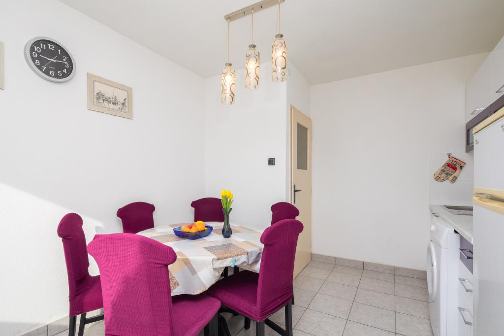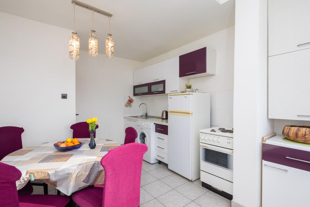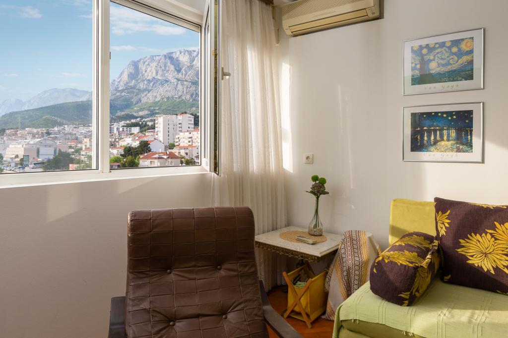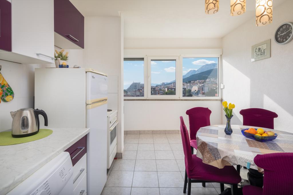 Bienvenue dans notre appartement au cœur de Makarska ! Situé au dernier étage, il offre une vue panoramique imprenable sur la ville et une vue partielle sur la mer, offrant un cadre enchanteur pour votre séjour. En entrant, vous découvrirez une chambre spacieuse qui offre un coin douillet pour un sommeil paisible. La cuisine et la salle à manger sont idéales pour préparer et déguster des repas, tandis que le salon contient deux canapés-lits, permettant d'accueillir des invités supplémentaires. Pour compléter encore plus votre expérience, l'appartement donne accès à une charmante terrasse sur le toit de l'immeuble, équipée d'un coin salon. Ne vous inquiétez pas, un parking gratuit est disponible à côté de la propriété, vous garantissant un séjour sans soucis. Une machine à laver est également à votre disposition pour plus de confort. Plongez dans l'atmosphère animée de Makarska depuis notre appartement situé au centre. Réservez votre séjour dès aujourd'hui et découvrez le mélange parfait de confort, de commodité et de belles vues !