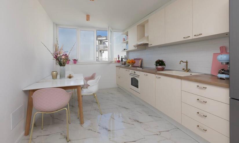 Appartement entièrement rénové dans un immeuble résidentiel. Il est situé au deuxième étage, à 3 minutes à pied de la plage et à 10 minutes à pied du centre avec parking devant l'immeuble.